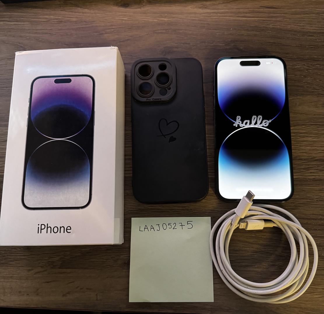 iPhone 14 Pro - with case and charging cable