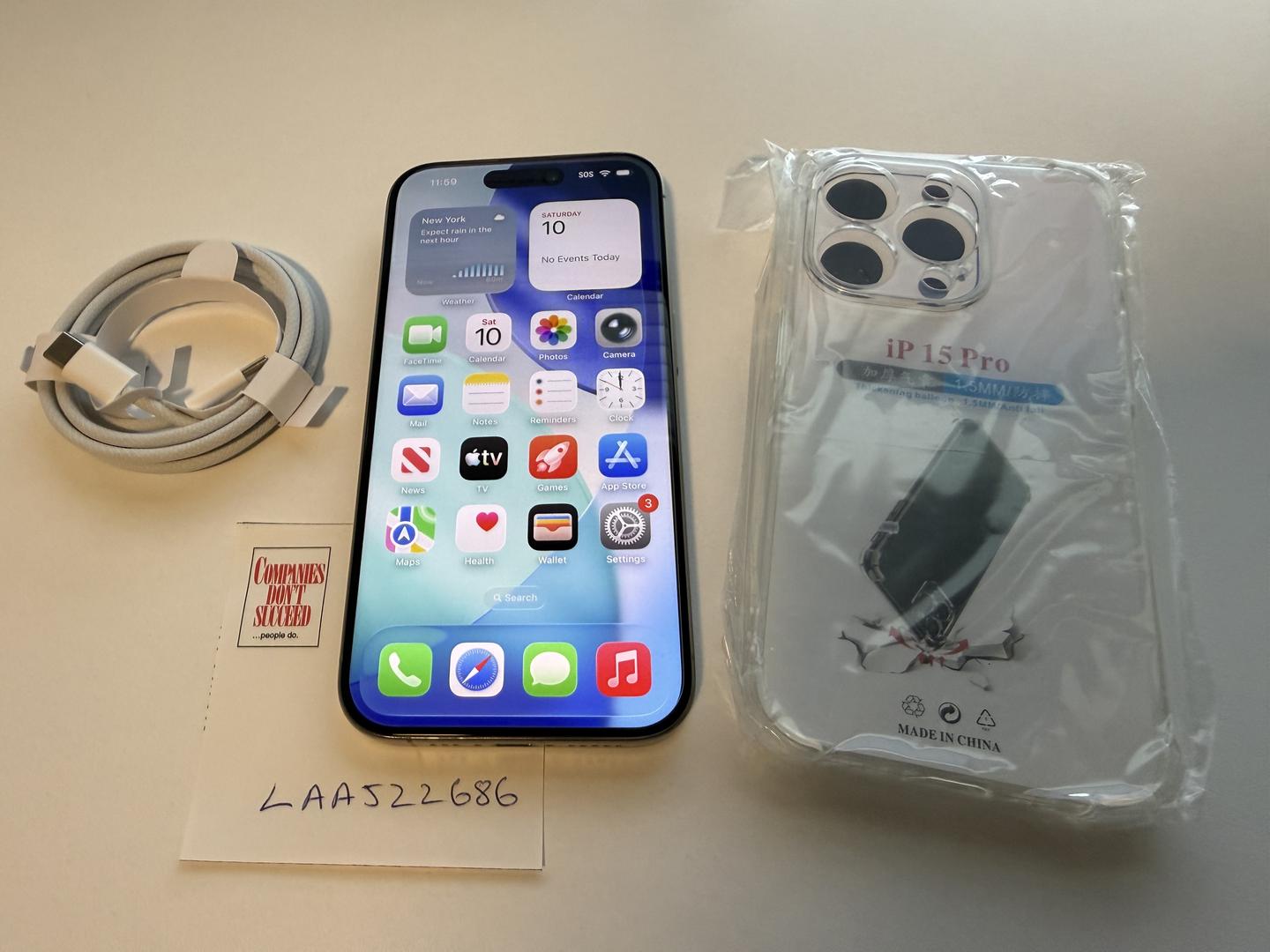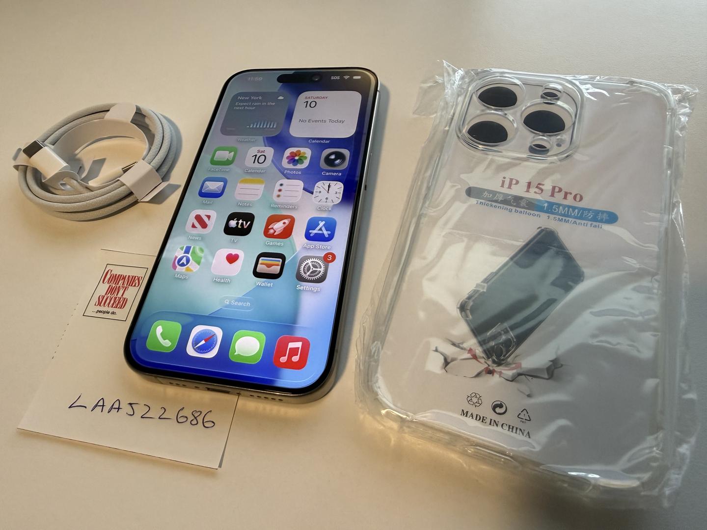 Please note: this iPhone 15 Pro does not come with its box and accessories. It comes with a complimentary new cable, new already applied tampered screen protector, and a new clear case. Please see images for details.