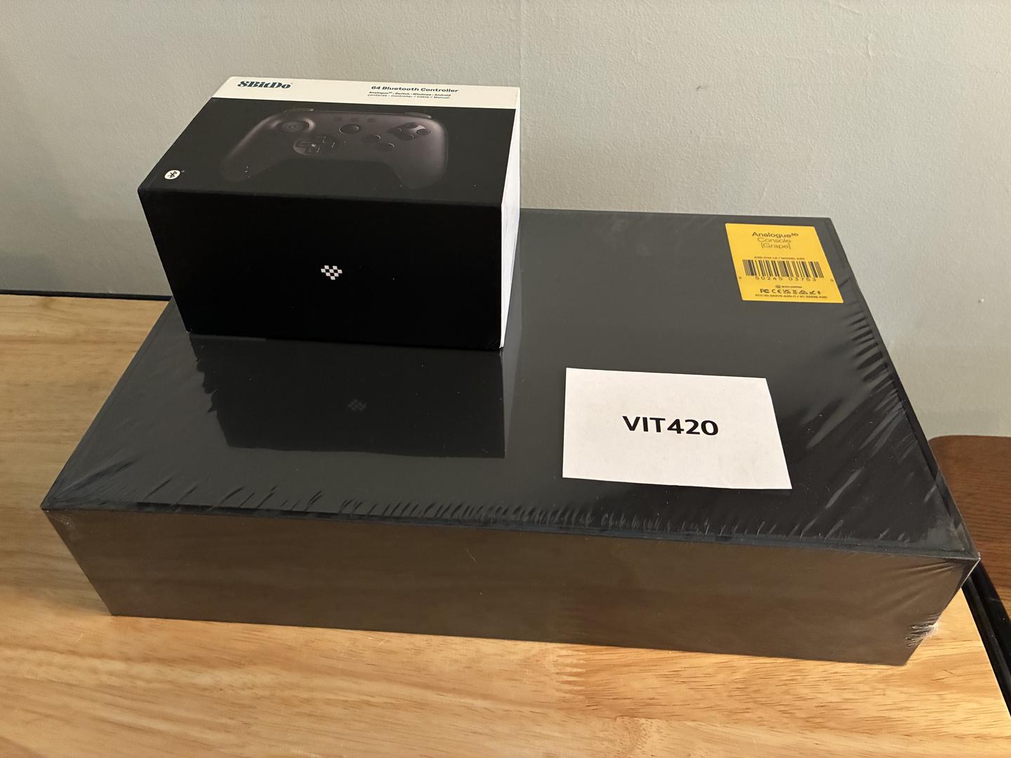 Brand new in sealed box. Comes with an open box black 8Bitdo 64 controller.