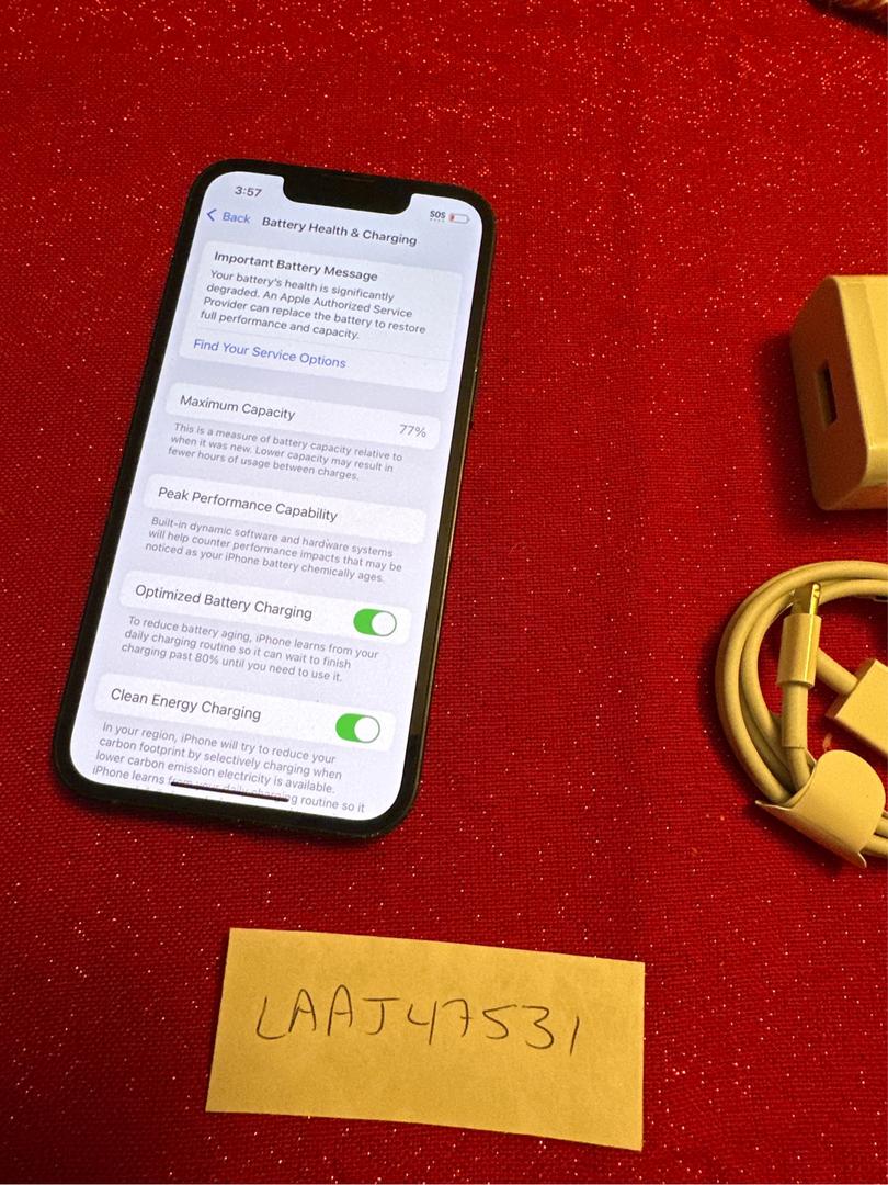 Fair condition with scratches around the edges. Battery health is at 77%. Included is the iPhone and aftermarket charger. Item will ship within 24 hours of cleared payment.