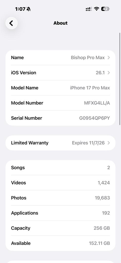 Like new! The phone was purchased in November 2025 and only has about 70 cycles of battery. I’m switching over to google pixel 10 pro xl and loved it. I don’t need 2 great phones and just trying to get back my money. The phone has had a case and screen protector since Day 1. No blemishes etc. It is fully unlocked and will be shipped with the original box and its usb-c cable.