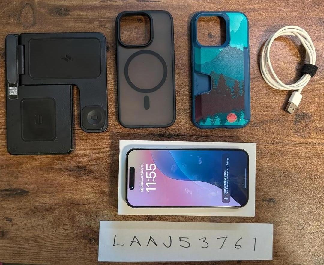 This listing includes the phone, two cases, usb to usb-C cable, and a wireless charging station for your new phone!