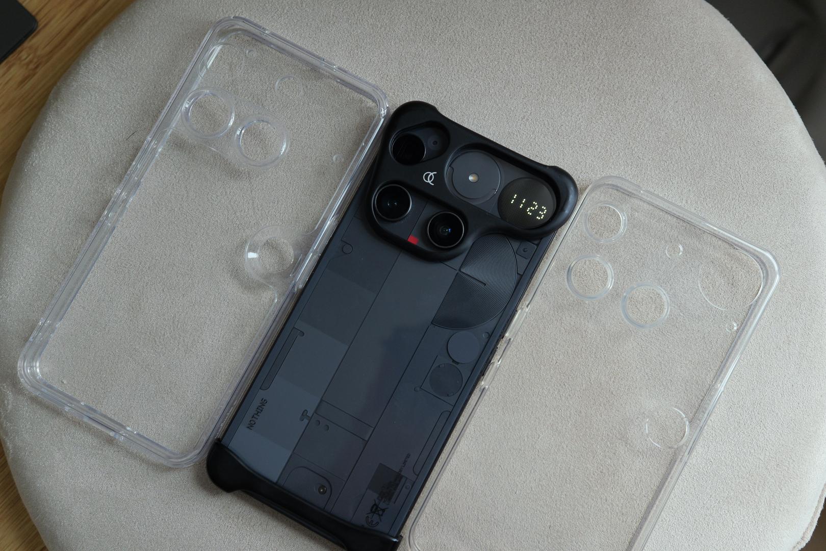 Phone 3 with arc case and 2 transparent cases