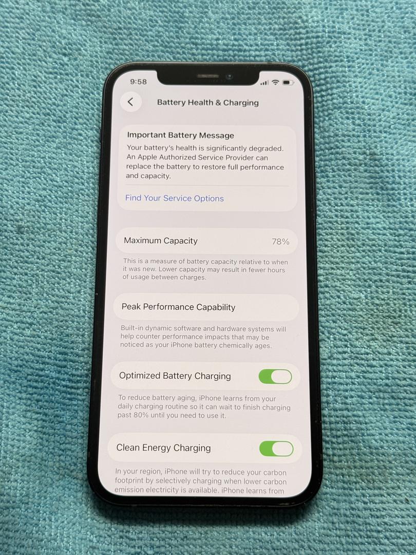 Fantastic condition overall one of the cleanest 12s we’ve seen in a long time battery health is okay for devices age, all OEM parts.