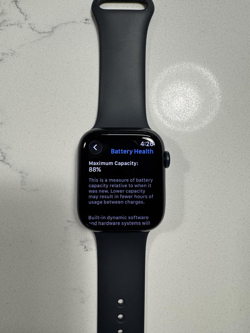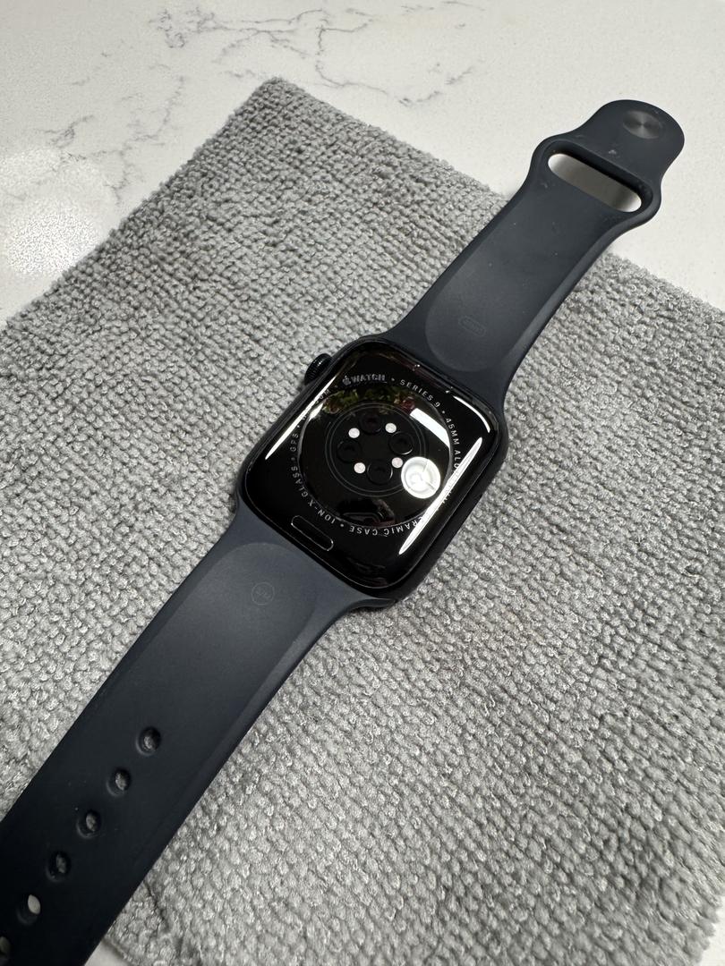 For sale is an Apple Watch Series 9 45MM Midnight watch. It is in overall good condition. It does have minor wear in tear mainly on the watch band. Always well taken care of and a screen protector since day 1. It does come with two new screen protectors to install. Also, included is the original charging cable as well as all of the original packaging that it came with when brand new.