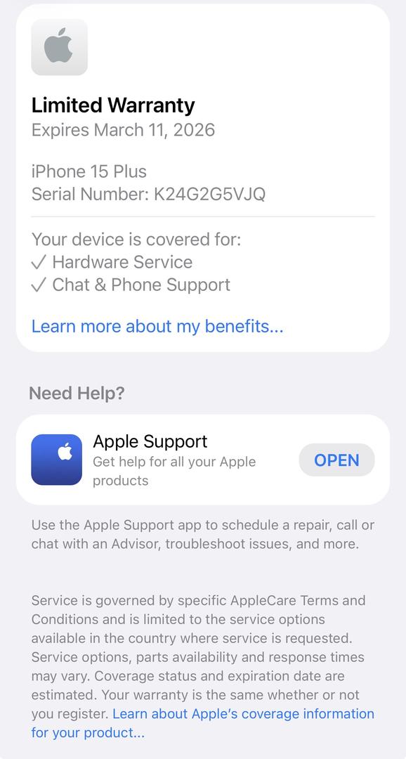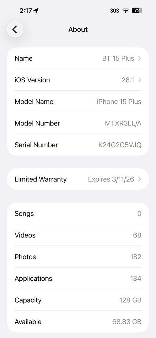 Black used Iphone 15 plus. Under Apple’s factory warranty until March 11th 2026.