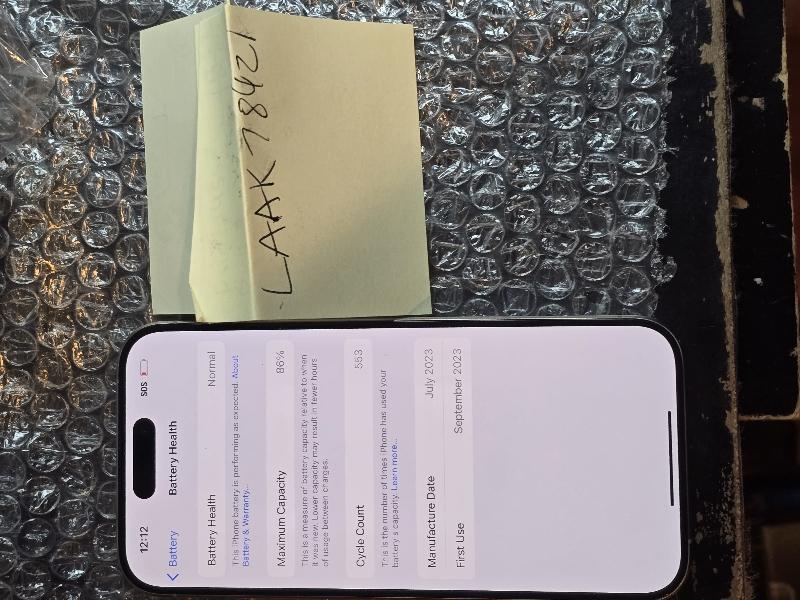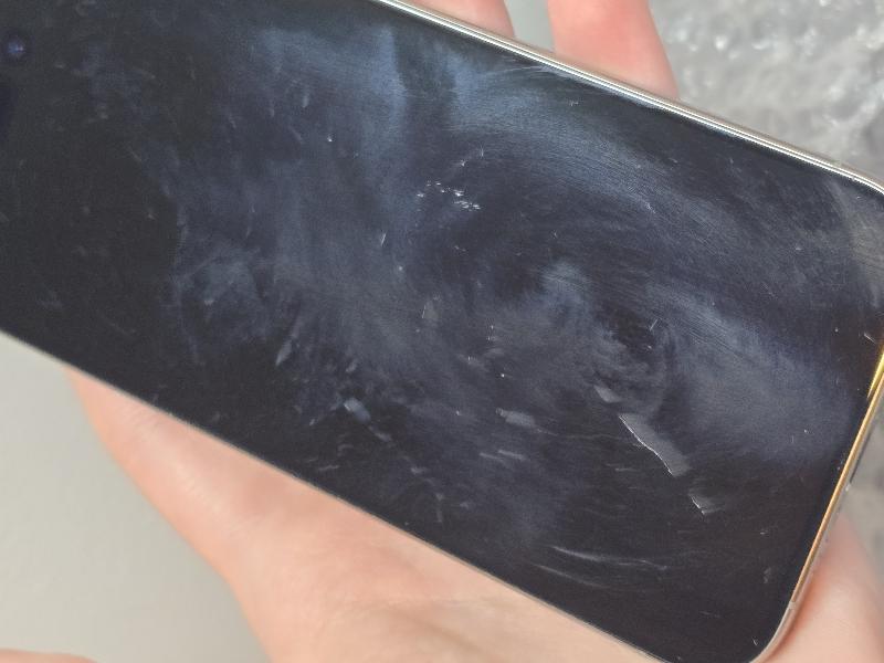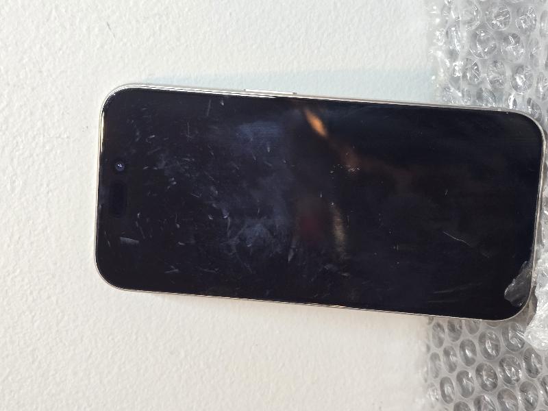iPhone 15 Pro 128 GB Natural in Fair Condition, Back and sides mint. Scratched up screen. Damage is pictured and purely cosmetic. Battery health is 86%, unlocked for use with any carrier. IMEI is clean and ready for activation. Kept well in screen protector and case.