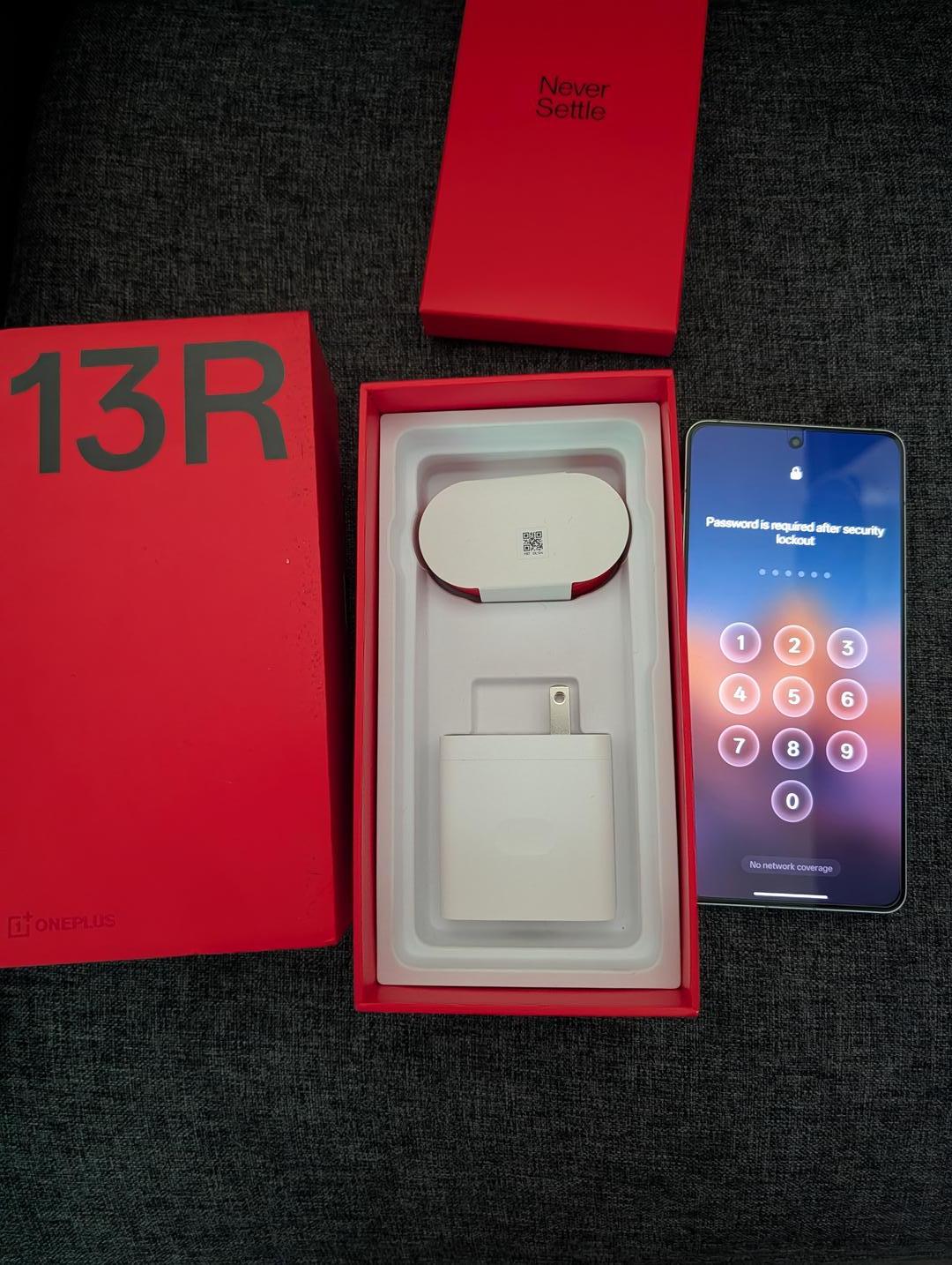 like new oneplus 13r has always had a screen protector and a case from one plus, come with box and fast charger