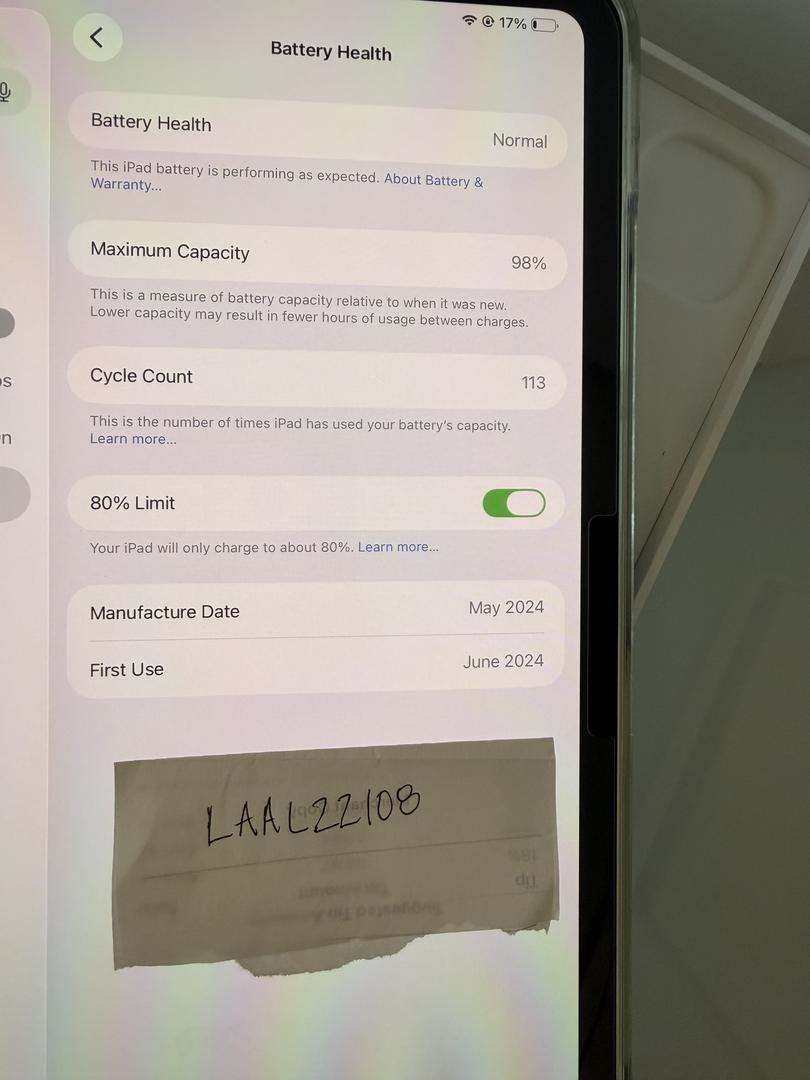 Excellent condition with no scratches, dents, or dings. I am the original owner and it was purchased from Apple directly. It comes in the original box with the OEM USB charging block. An ESR Armorite Series Screen Protector is already installed and in great shape.. I also have kept it in the ESR clear plastic case that will be included with it too.