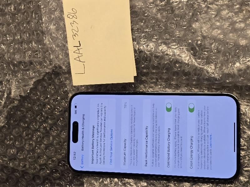 iPhone 14 Pro Max 128 GB Purple in Good Condition, Scratches and scuffs on screen, back, and sides. Damage is pictured and purely cosmetic. Battery health is 78%, unlocked for use with any carrier. IMEI is clean and ready for activation. Kept well in screen protector and case.
