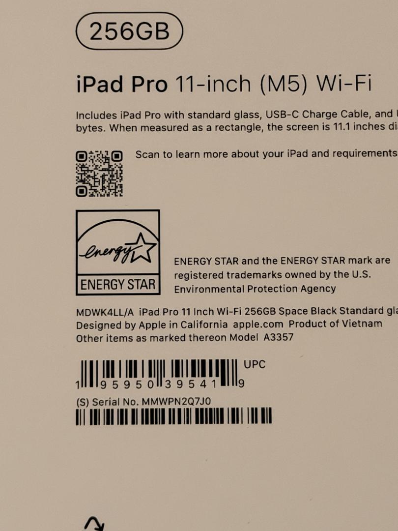 Brand New Sealed iPad Pro 11” (M5) – Wi-Fi – 256GB – Model A3357 -Eligible for AppleCare