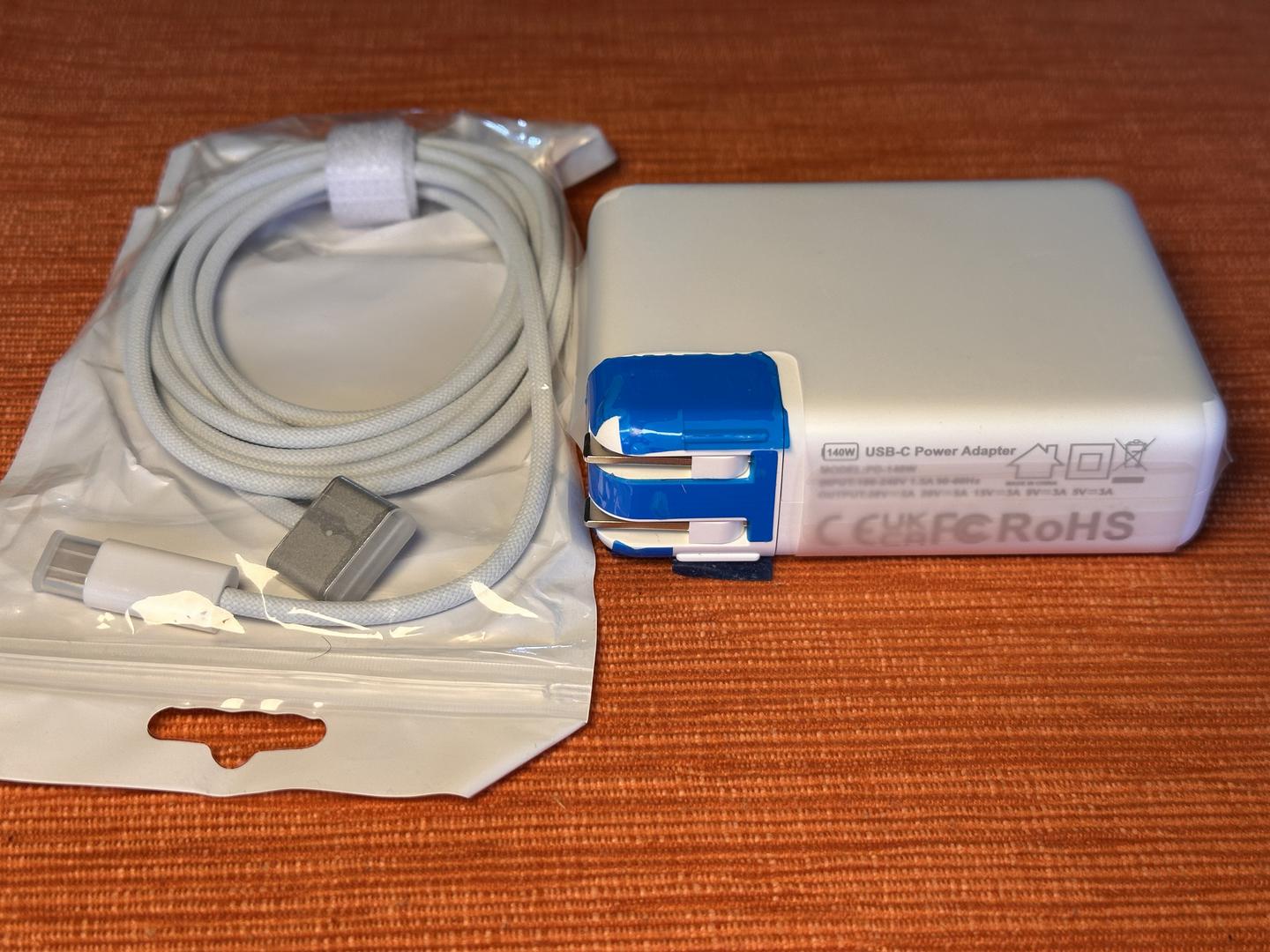 • New 140W fast charger + MagSafe cable (non-Apple)