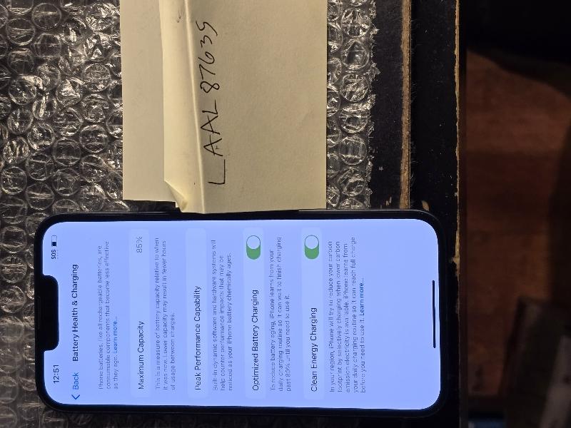 iPhone 13 128 GB Black in Good Condition, Small scratches and scuffs on screen, back, and sides. Damage is pictured and purely cosmetic. Battery health is 85%, unlocked for use with any carrier. IMEI is clean and ready for activation. Kept well in screen protector and case.