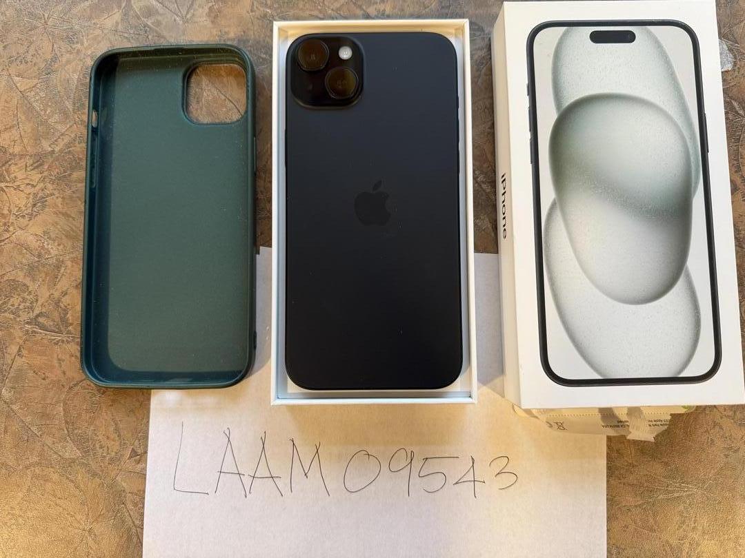 Selling my iPhone 15 Plus in Black, 256GB. Was purchased and used on T-Mobile but showed as unlocked when I took it off the network (was fully paid off). Great condition overall, always kept in case with screen protector on front and camera protector on rear (removed for sale). Very minor marks on sides from case rubbing against. Includes original box, sorry no cord. Will also a green case. Battery still holds great charge.