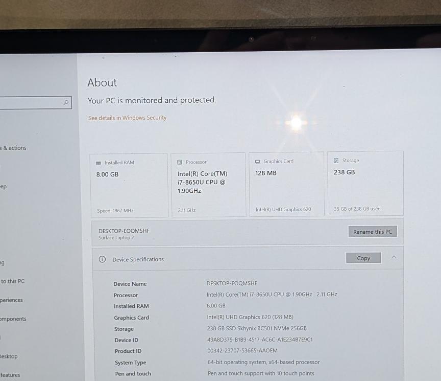 ⭐ Microsoft Surface LAPTOP 2 256GB STORAGE 8GB RAM i7 Processor