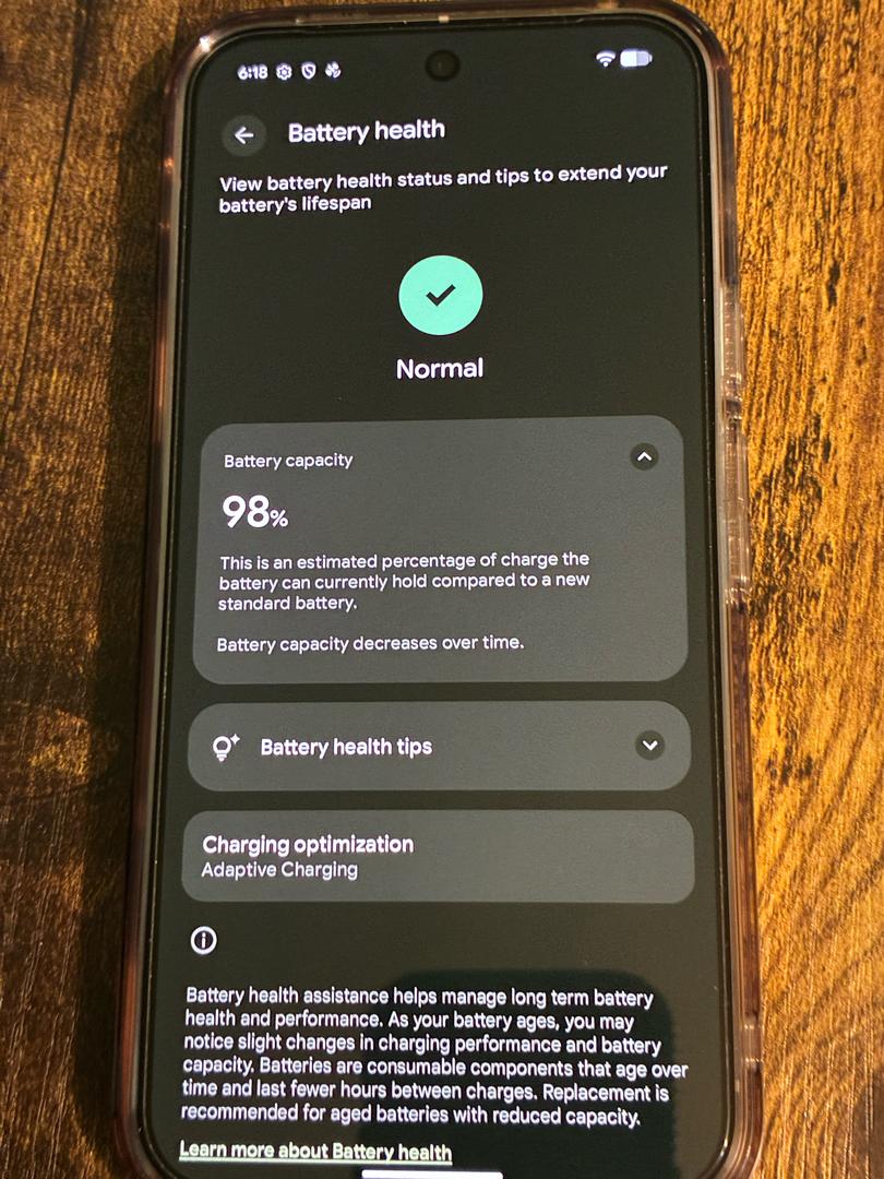 The battery health is 98%