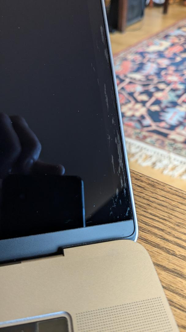 - Minor dent and scratch on bottom of case and small area of screen delamination on bottom right