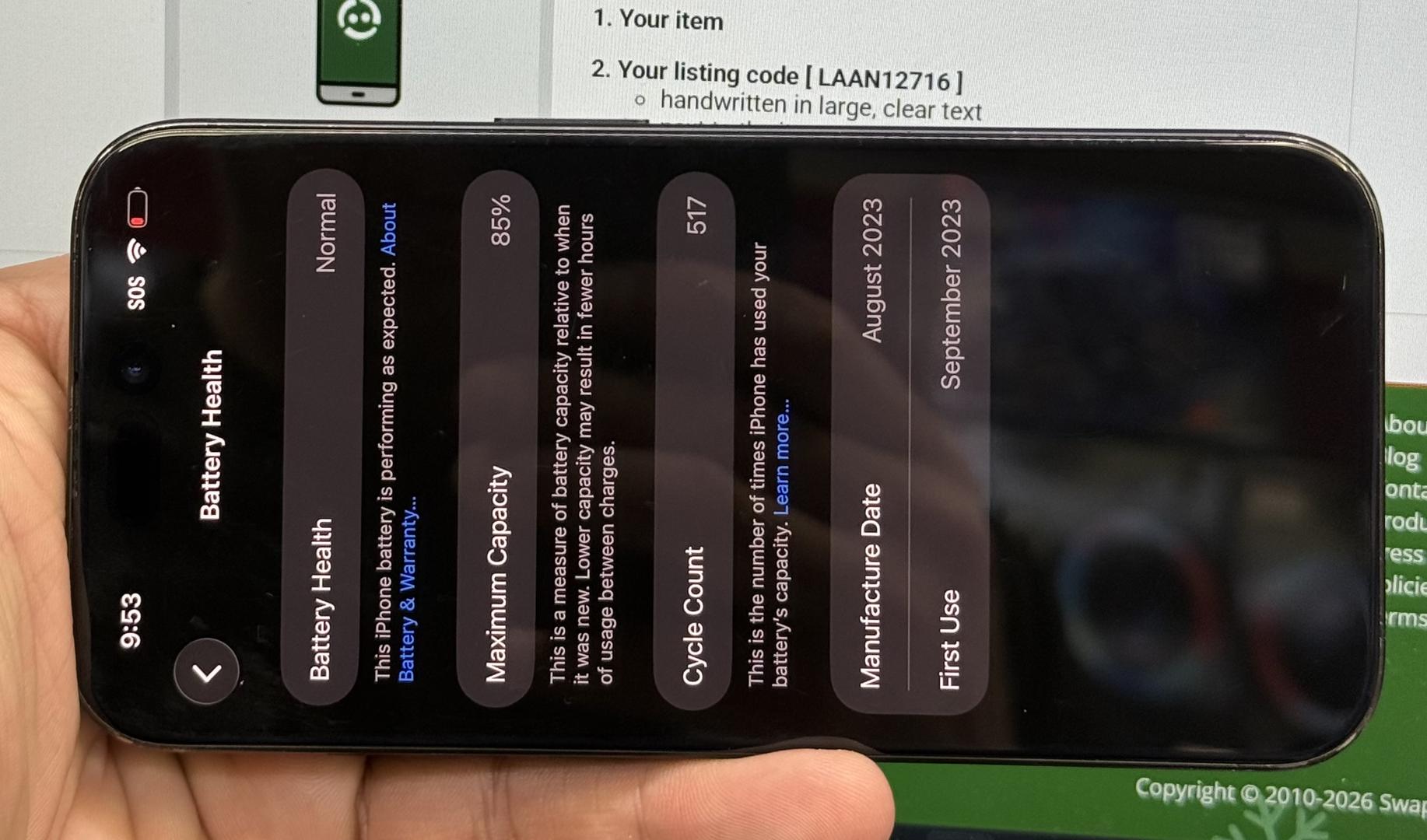 Battery Health 85%
