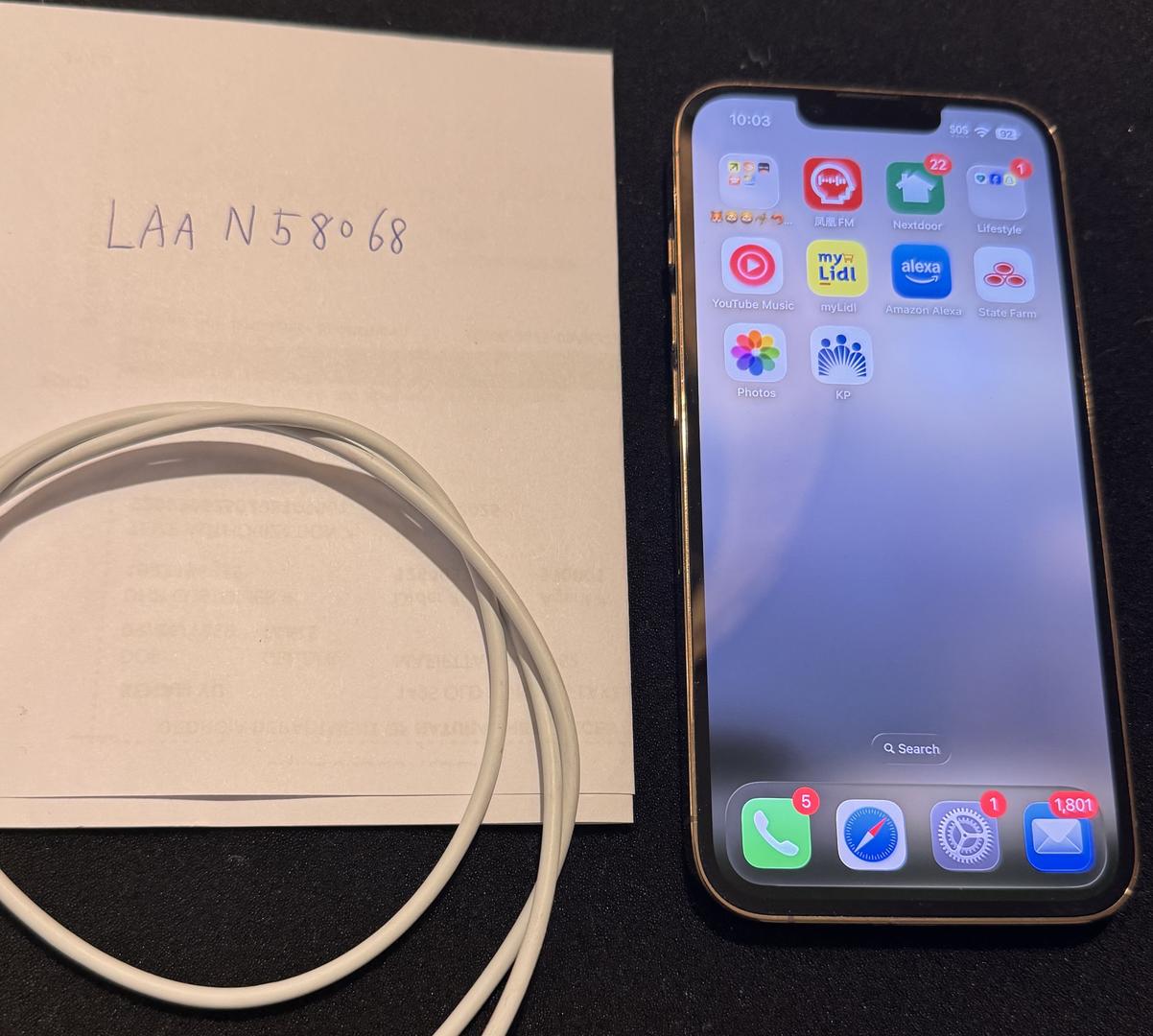 Gold color, 256gb, with a cord. and a nice cover