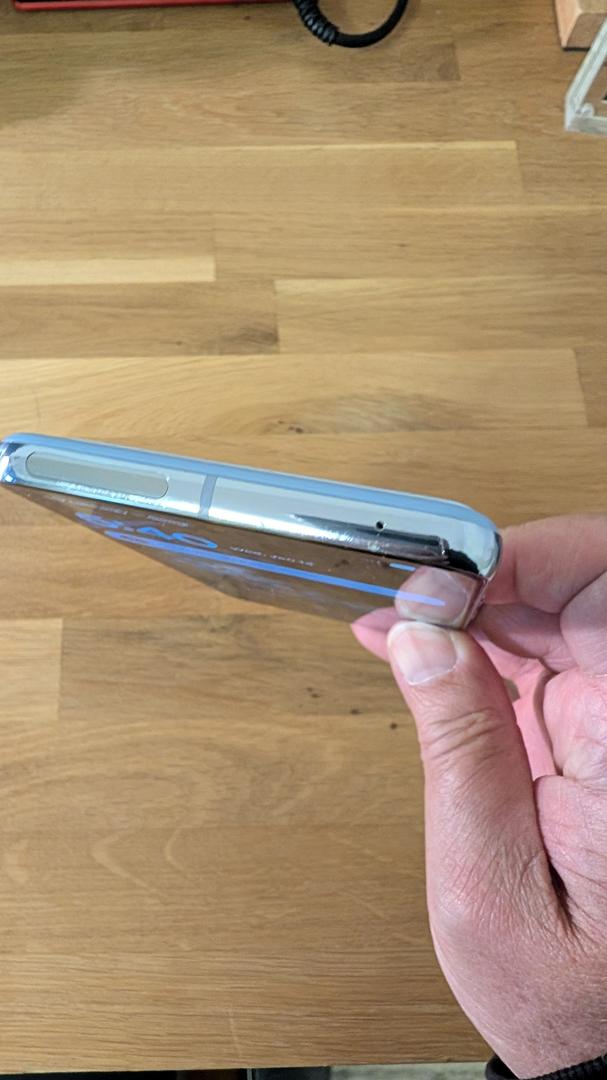 tiny hair line in glass top quadrant f the phone. Barely visible. Only visible if screen is off