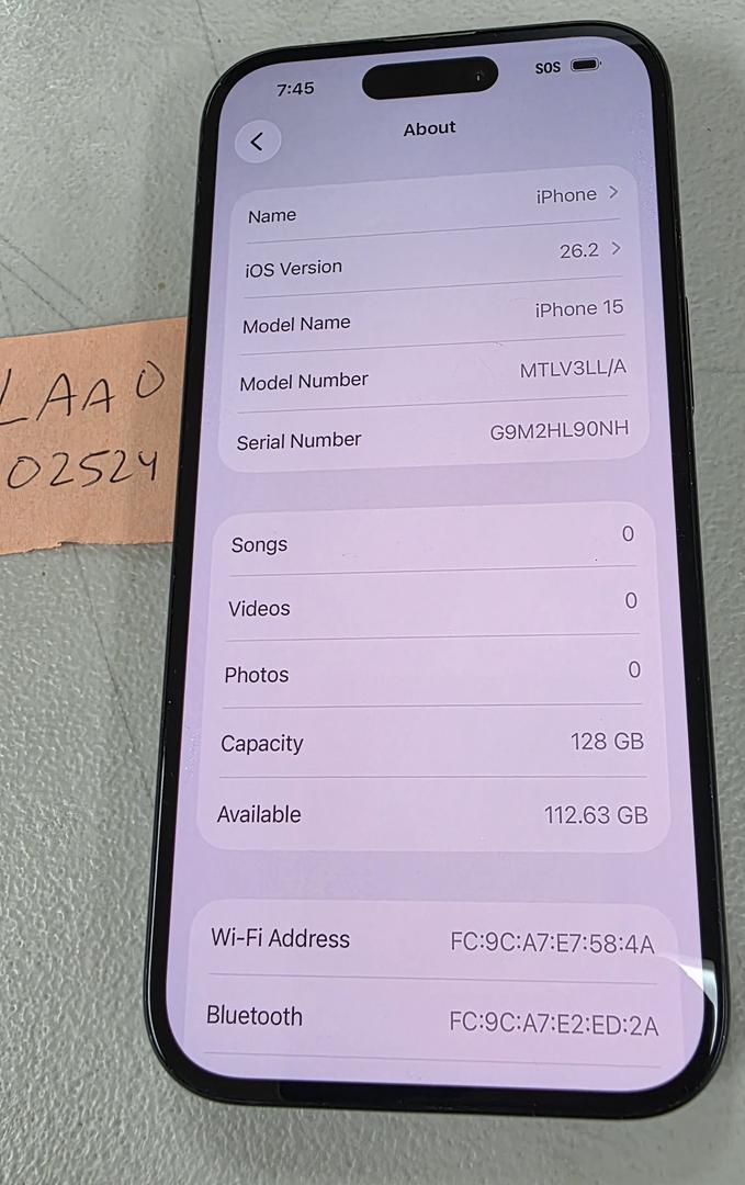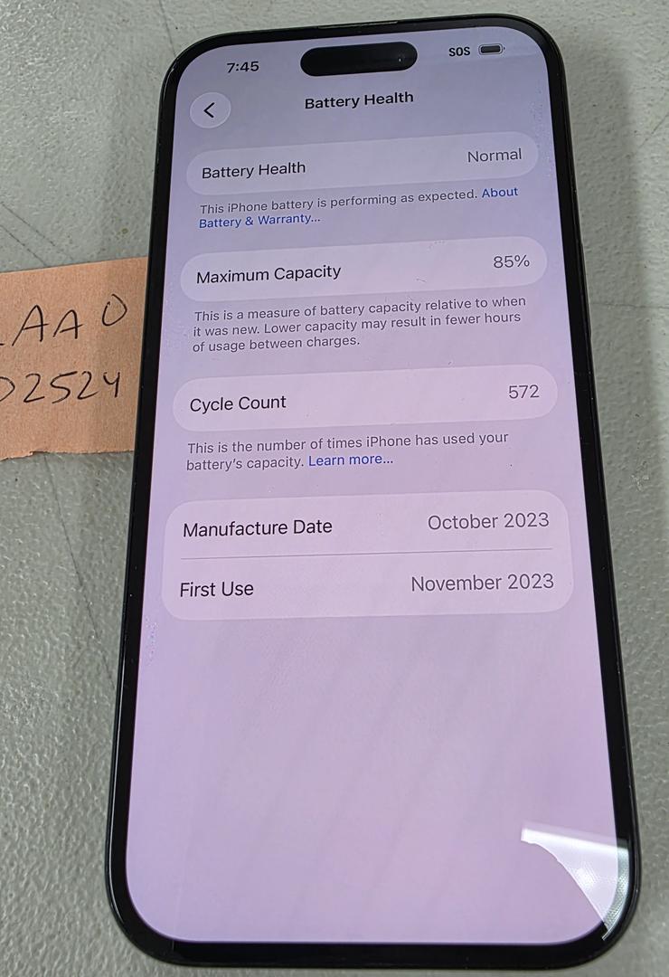 **85% BATTERY HEALTH*** Apple iPhone 15 128GB Black Unlocked A2846