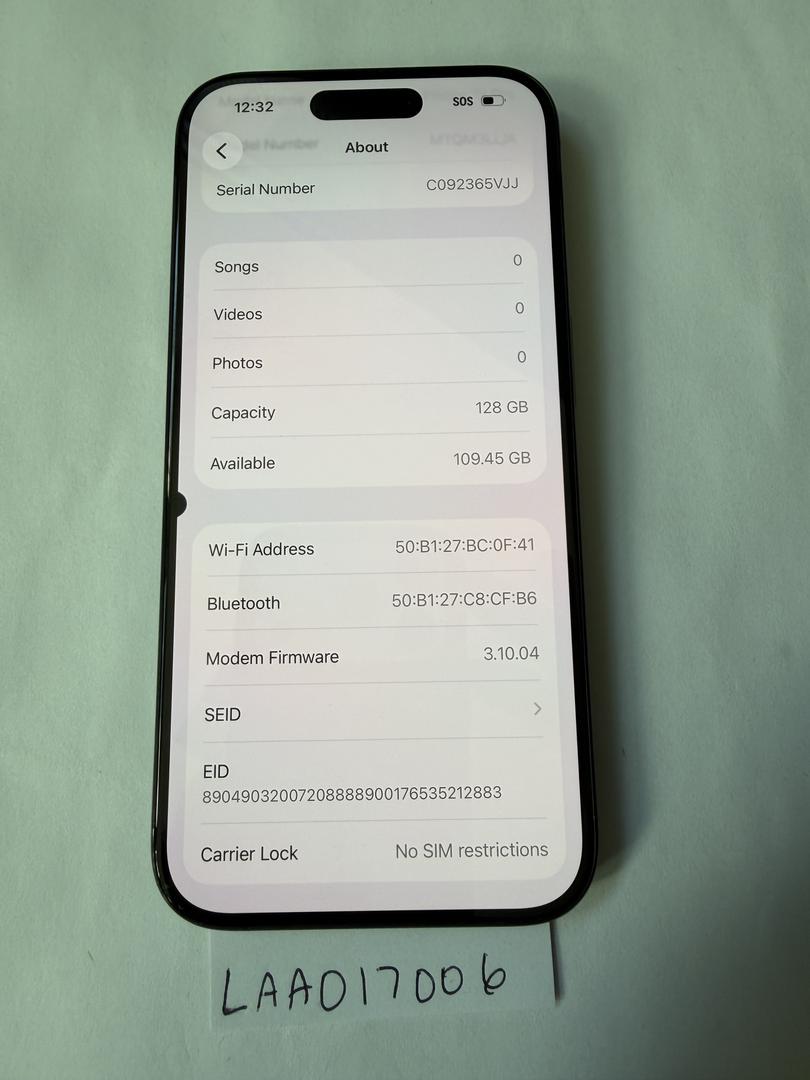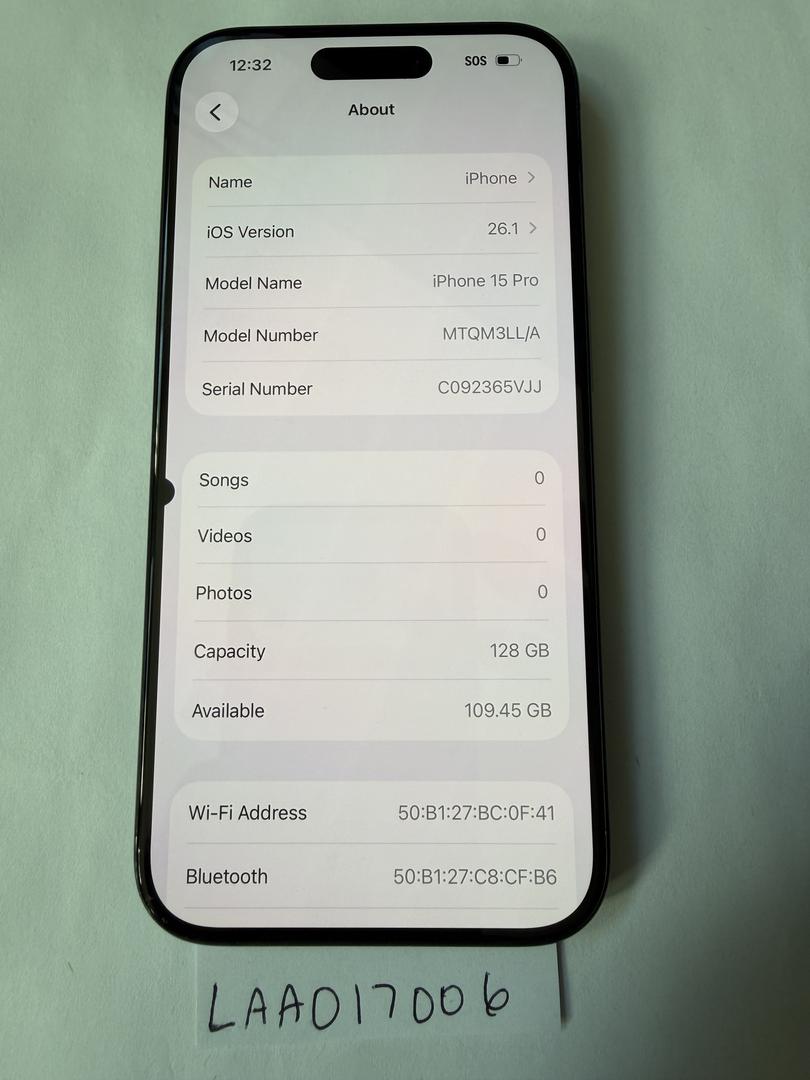 Unlocked iPhone 15 Pro 128 GB Black (BH 91%)