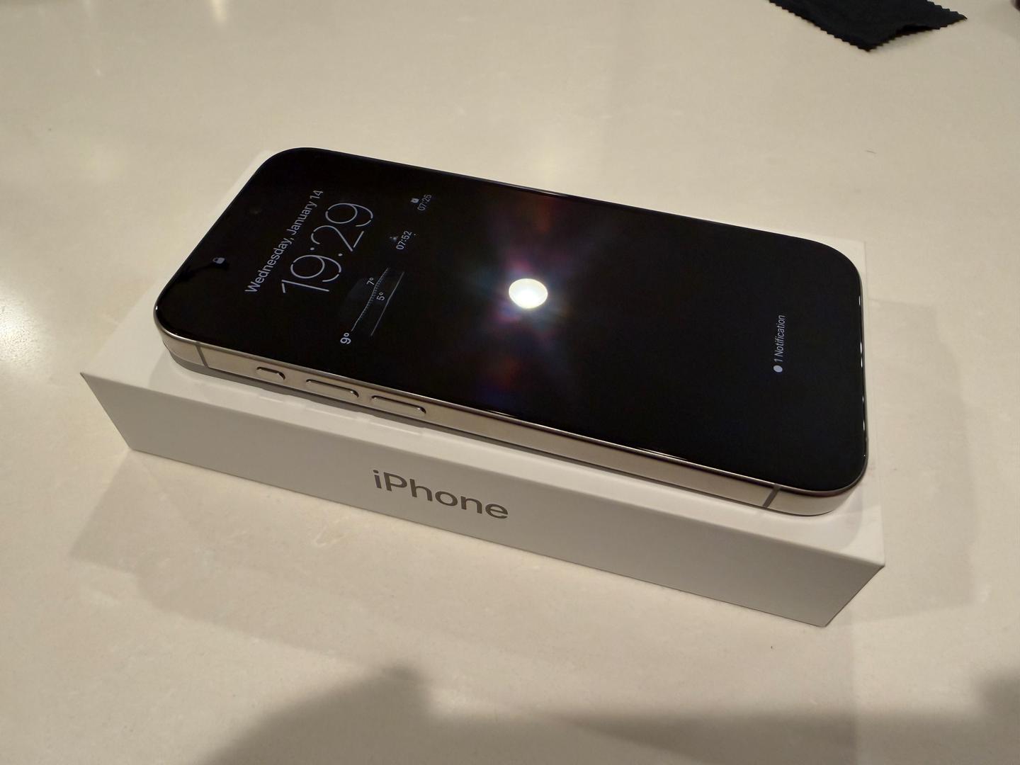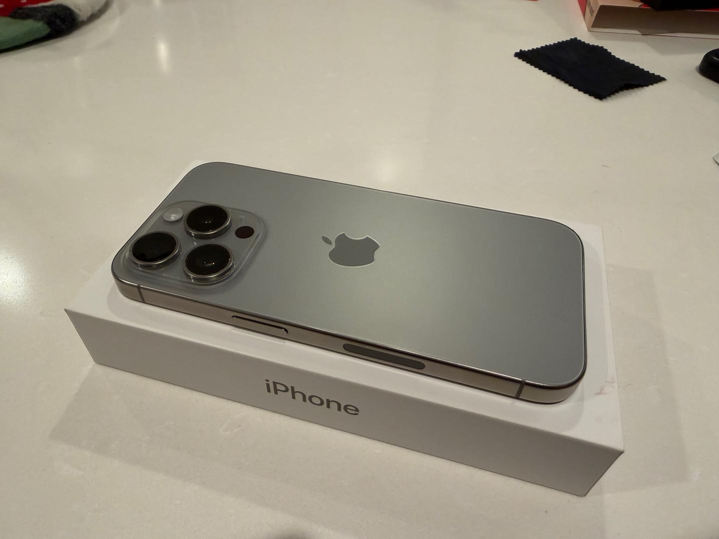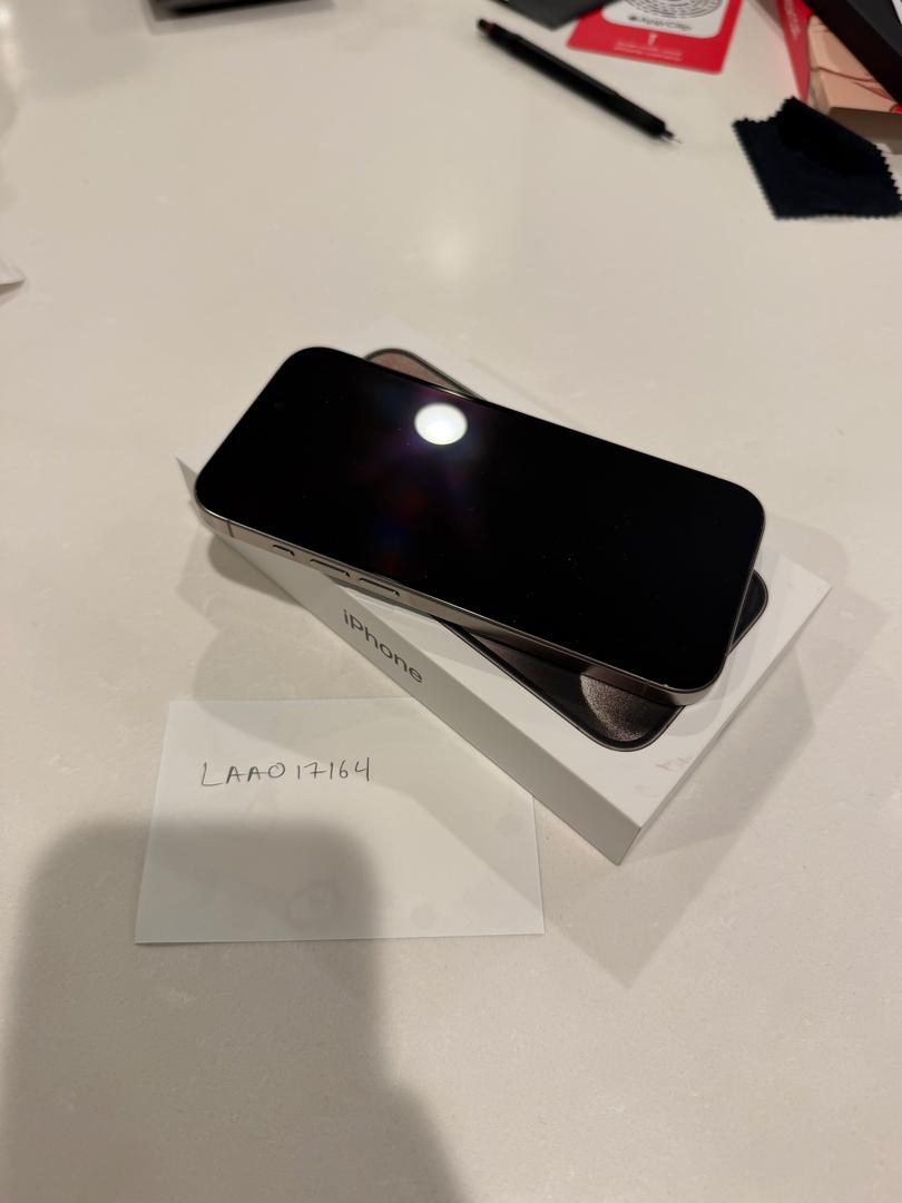 iPhone 15 Pro in Natural Titanium color, 256GB storage (higher than base). Unlocked.