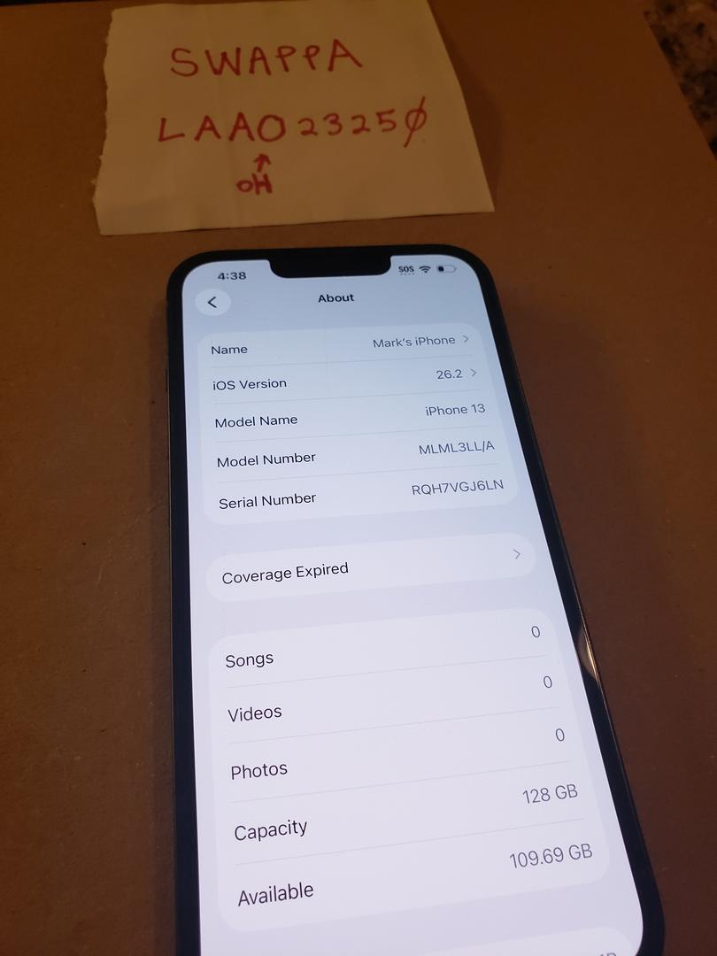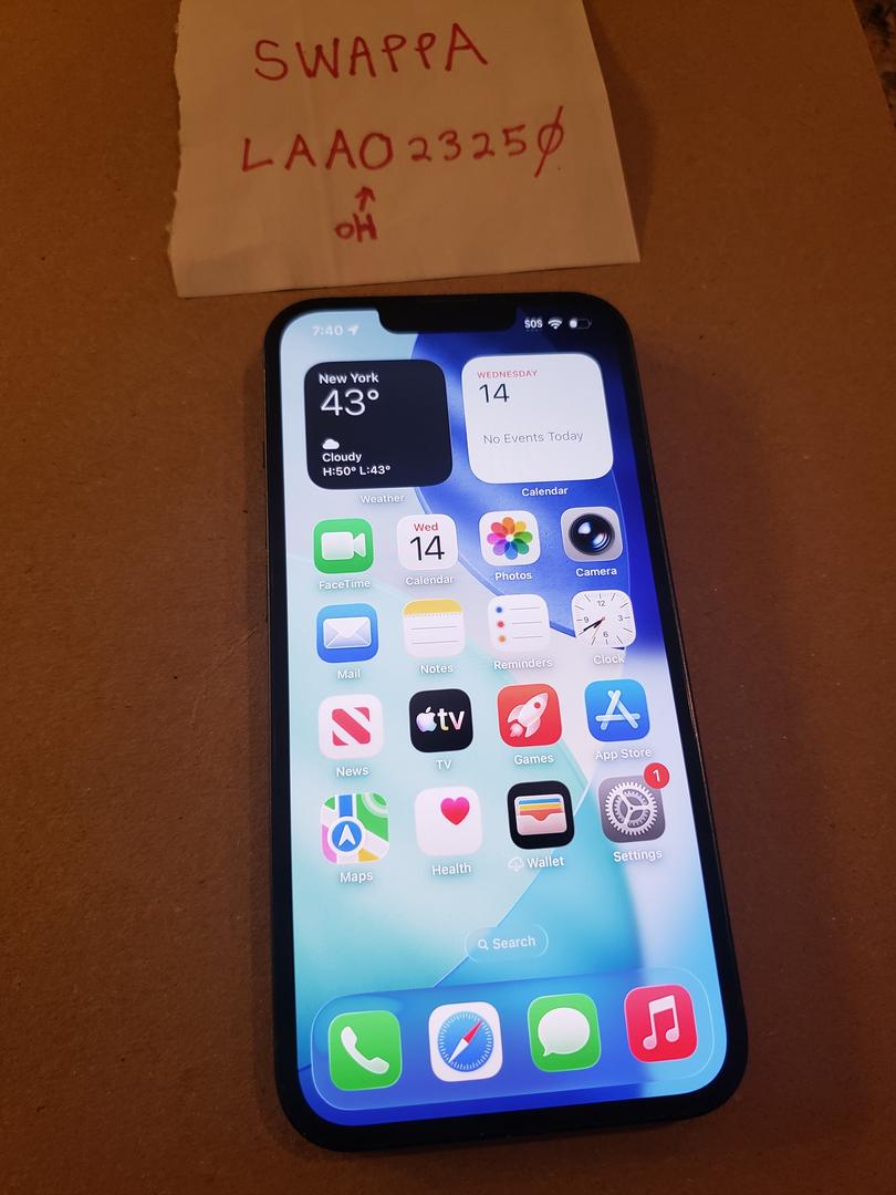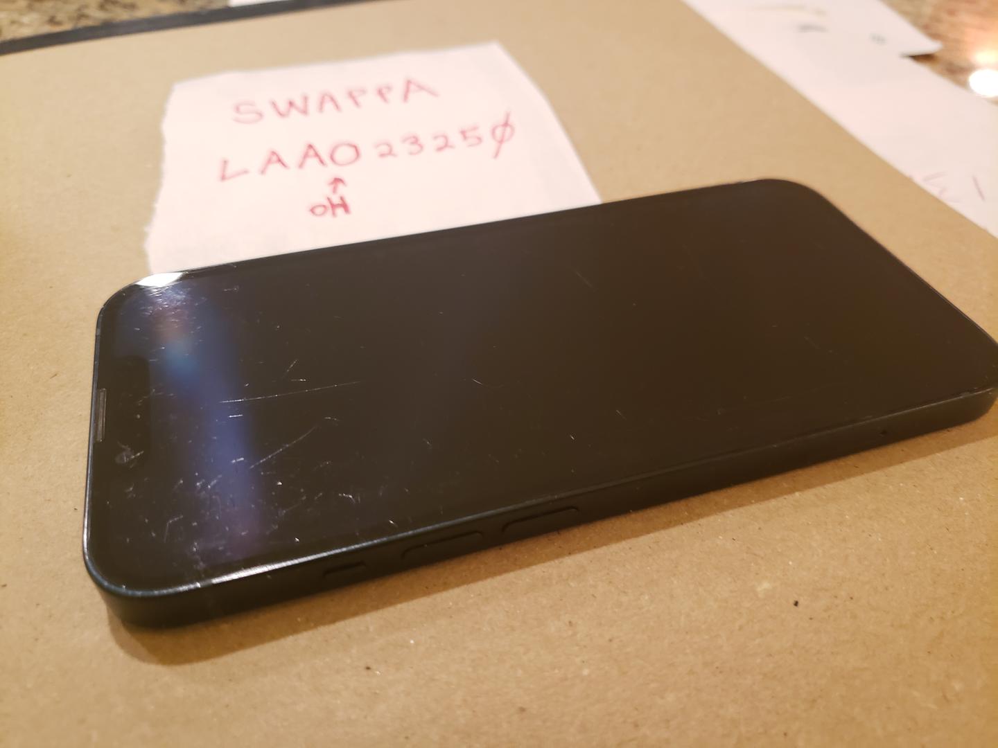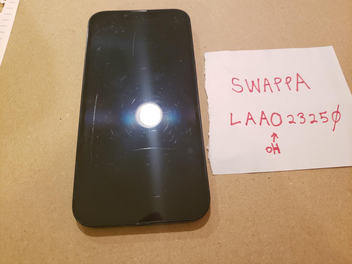iPhone 13, unlocked, 128Gb, black. Includes original box, but box is from a different iPhone 13. Does not include a cable or charger.