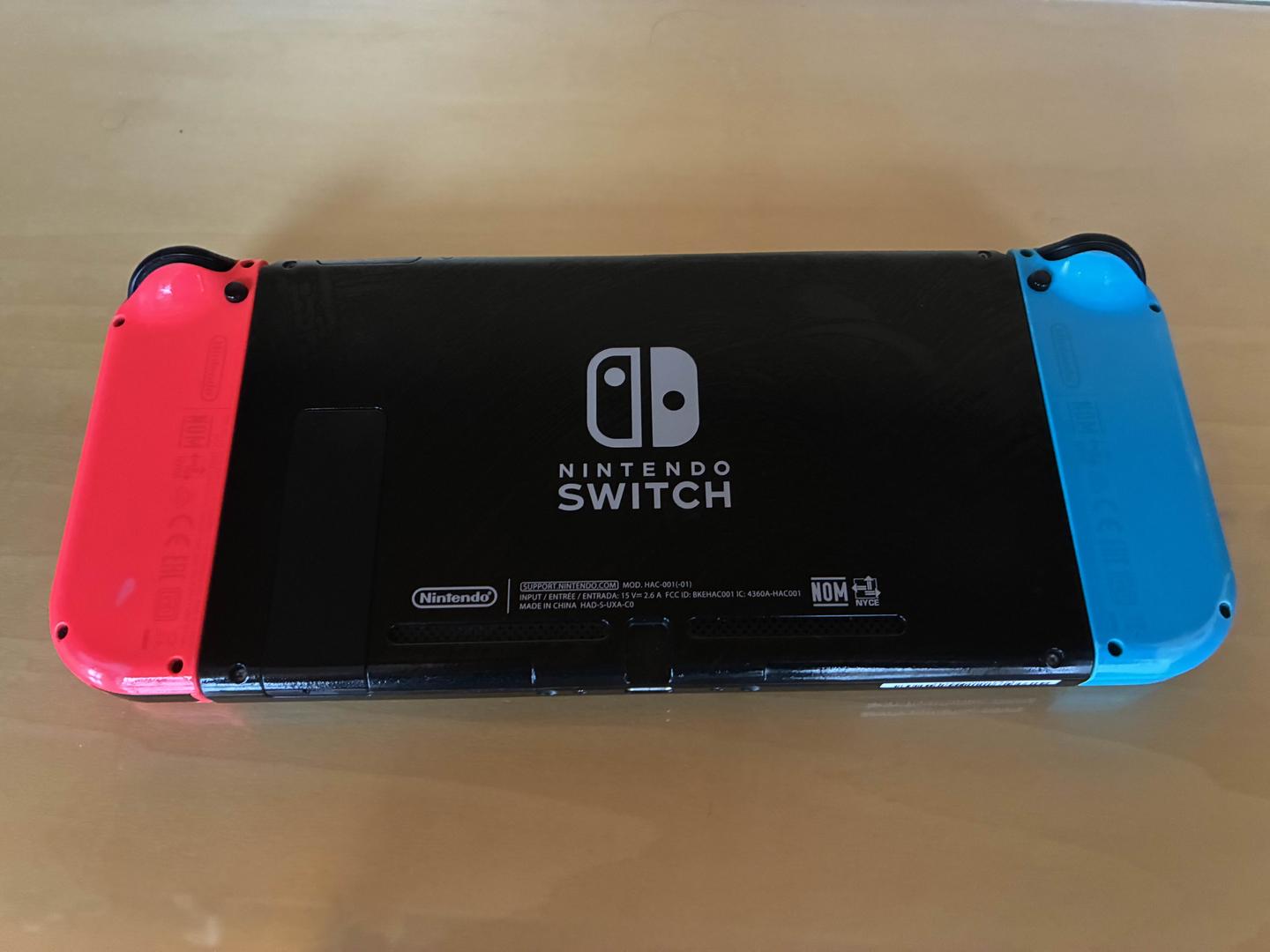 Light wear on blue joycon's control stick. Kickstand comes off easily. Otherwise great condition and fully functional.