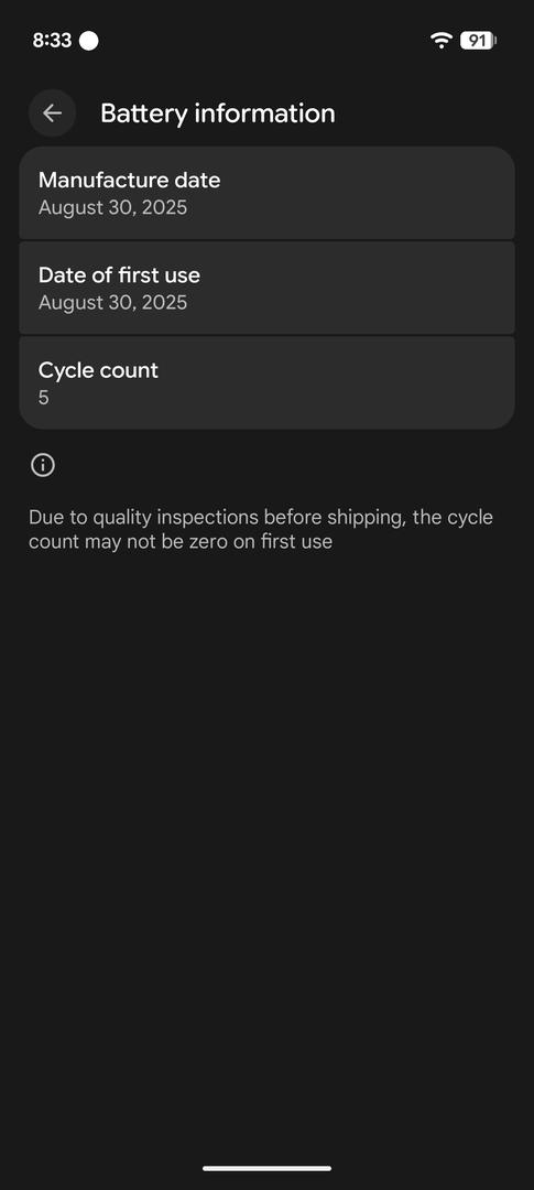 Almost new device with only 5 cycles on the battery