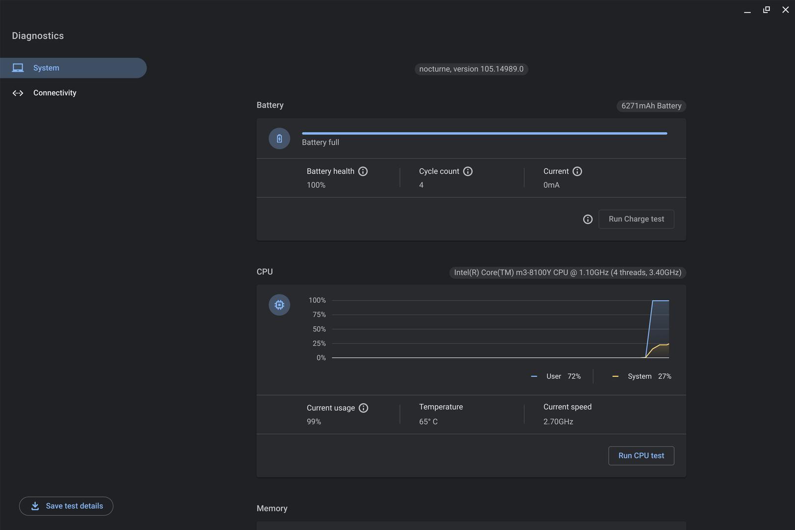 Battery has only 04 cycles which indicates the battery has been used approximately few days after out of the box. Battery health is perfect at 100%. Serial number: 112C. Battery count is the same as mileages of a car; based on the count, you can make an educated guess how long it has been used. Be aware of buying a Pixel Slate without information of battery as you may buy one that reaches the end of its life such as over 300 battery cycles.