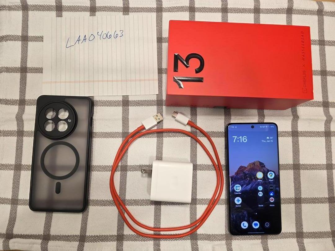 Black OnePlus 13 512GB w/ 16GB ram. Bought new in October 2025 from Bestbuy. Comes with all original accessories(Super Vooc Charger, box) also with a case. I left the factory screen protector on so that will be on it when you receive it.