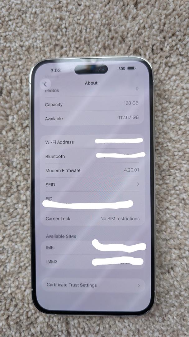 For Sale - very lightly used Iphone 14 Pro Max - Unlocked - Silver - 128gb memory