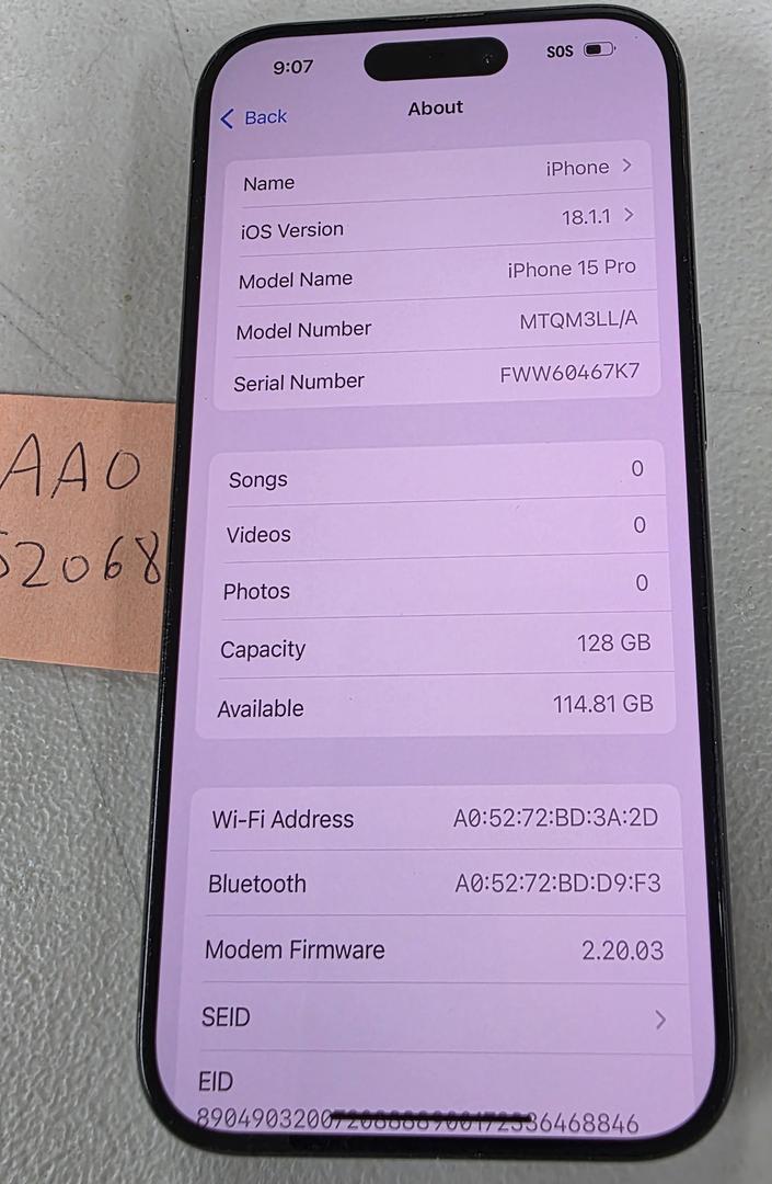 **88% BATTERY HEALTH*** Apple iPhone 15 Pro 128GB Black Unlocked A2848