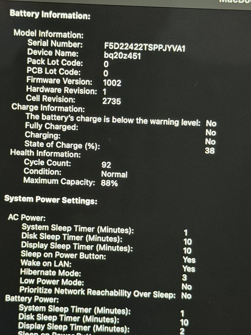 Battery: 88% Battery Health with 92 Cycles recorded