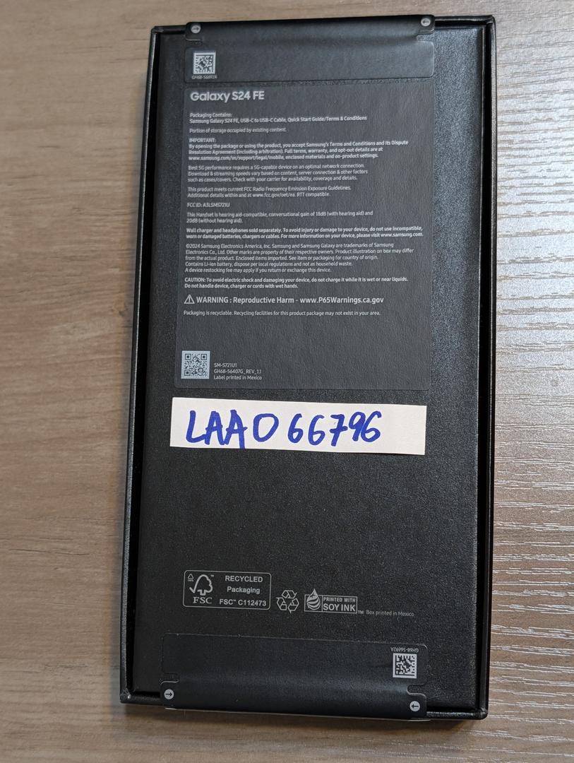 What's in the box: Samsung Renewed Galaxy S24 FE (128GB, Graphite); USB-C Cable