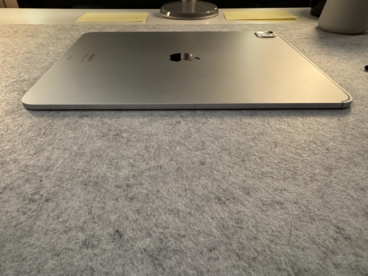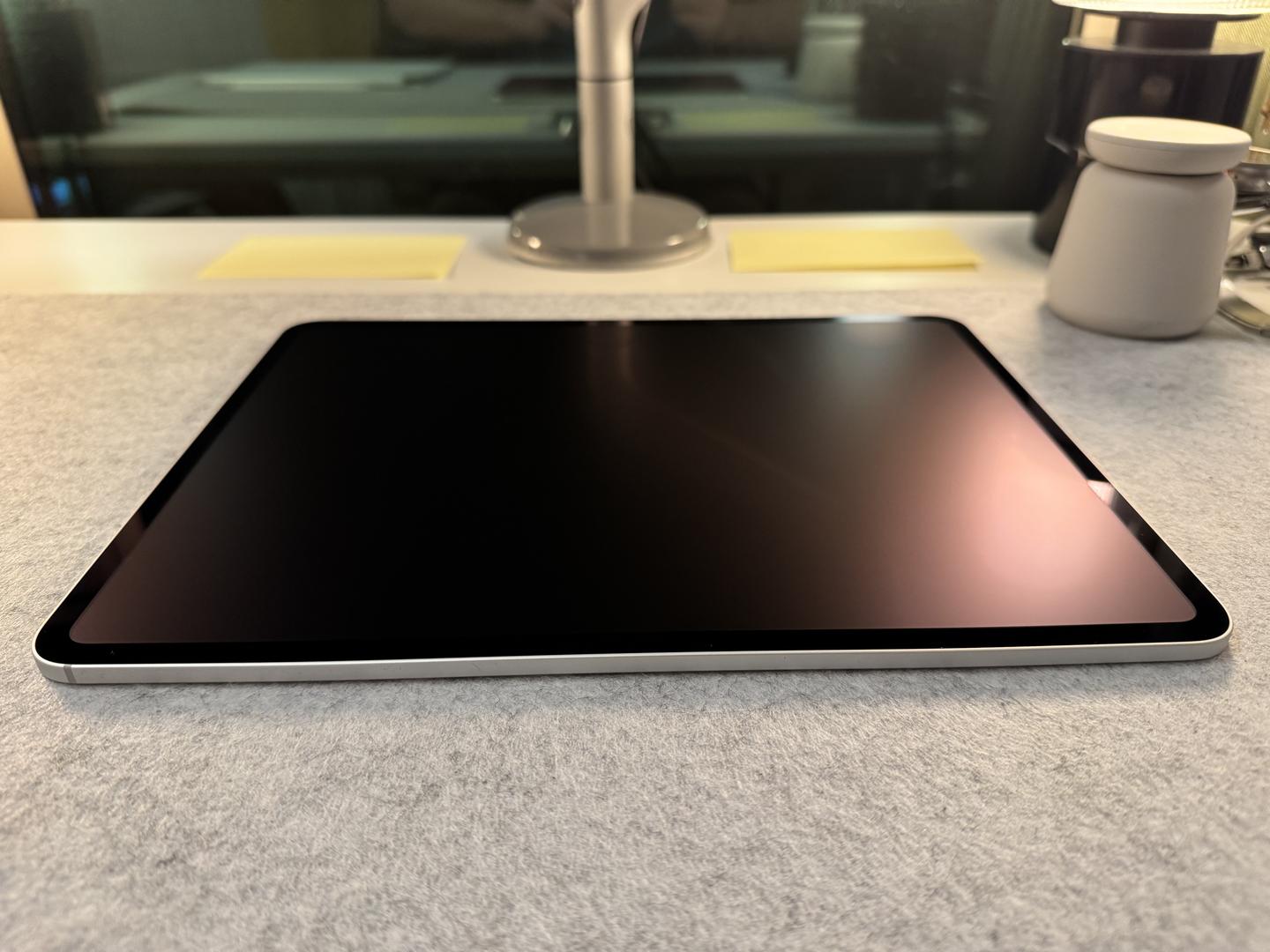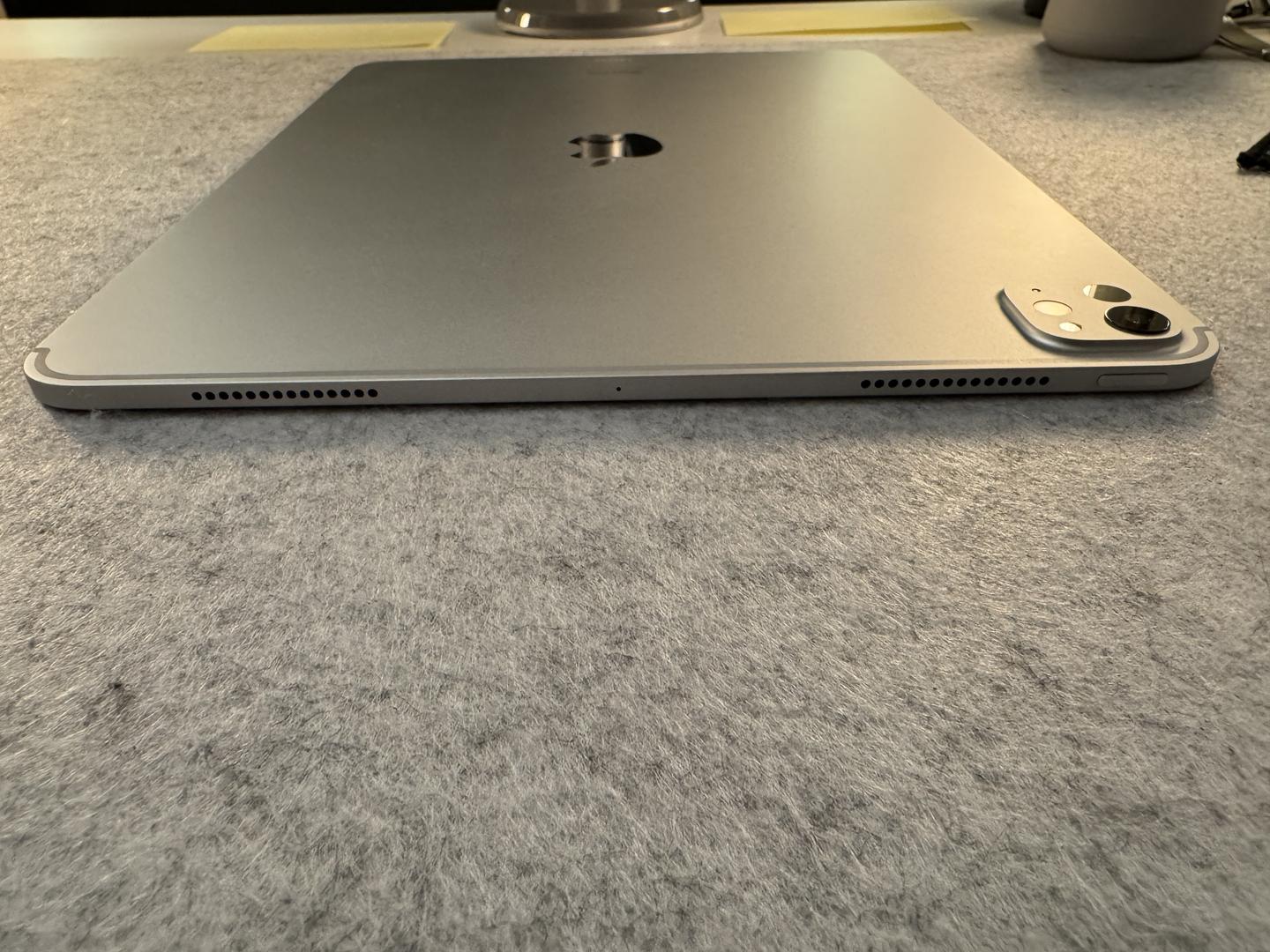 The metal body is free of any dents, however there are four small blemishes on the screen that are hard to see when the screen is on. Please see photos for reference. Apple Magic Keyboard is fully functional with no issues. Apple pencil is hardly used.