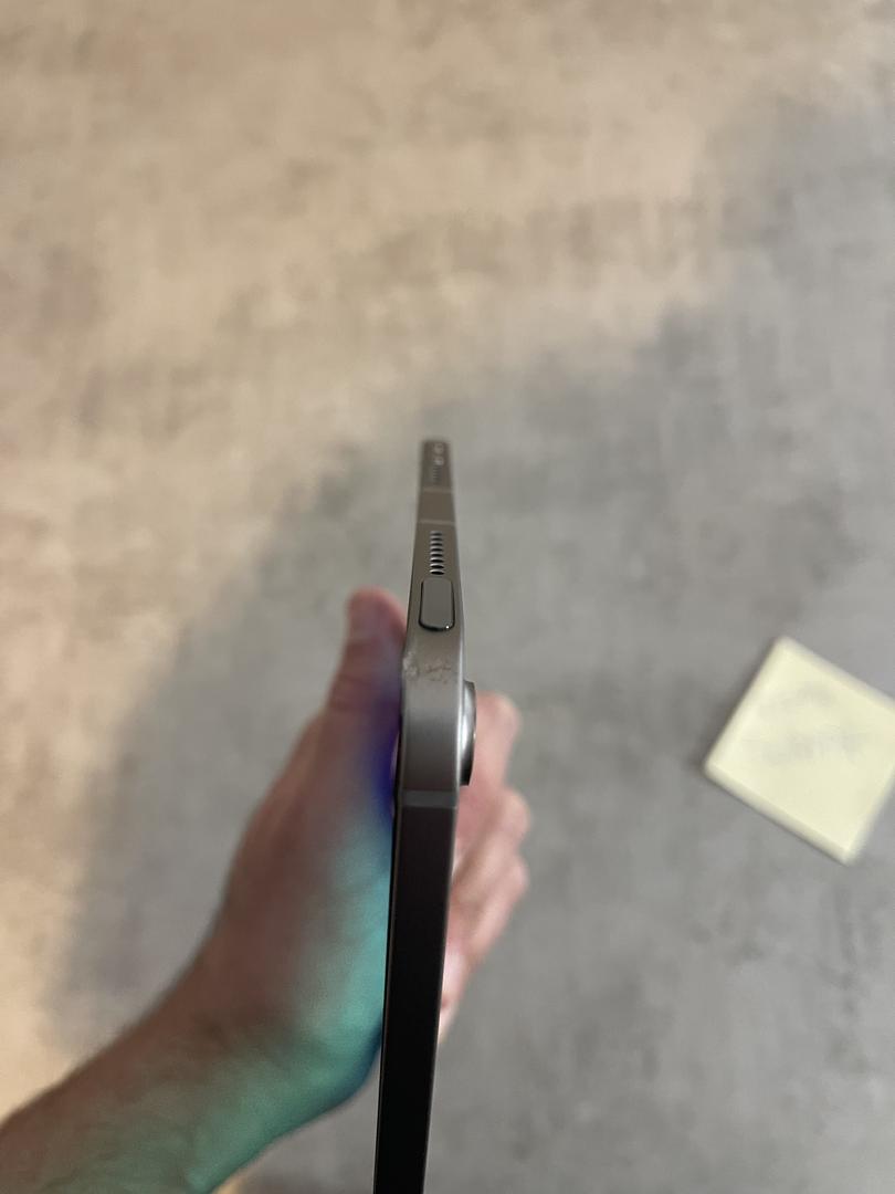 Dent on top right corner. Other than that it is excellent. Cycle count is ONE. Battery Health is 100%. See photos. Actual photos!!!