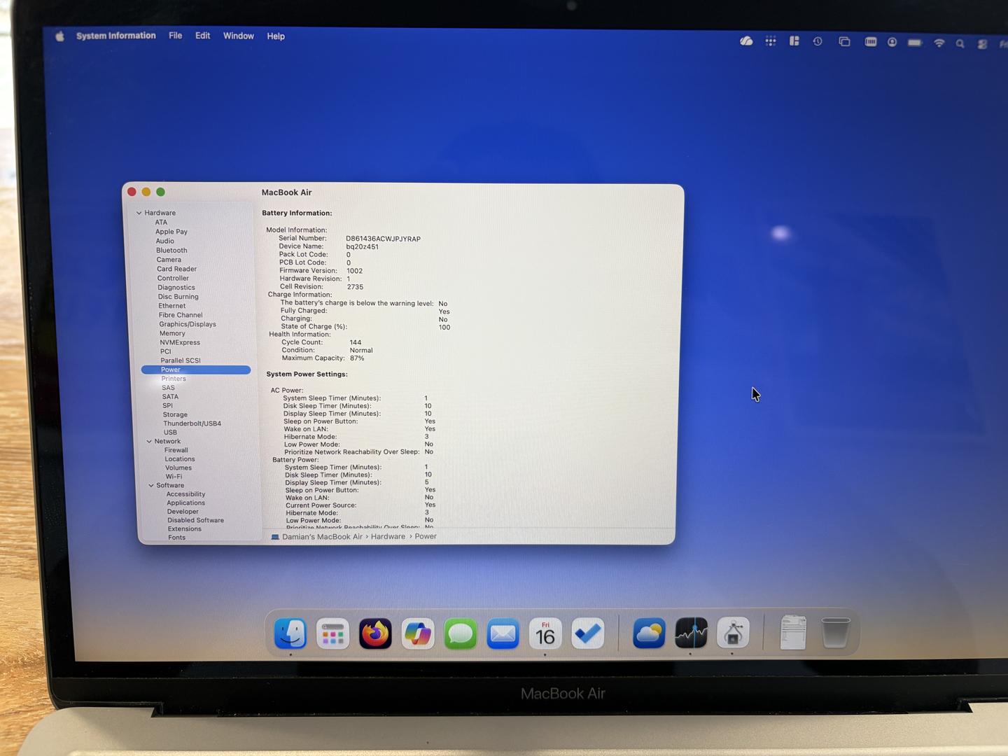 Selling this Macbook Air M1 8GB Ram 256GB SSD - in very good condition. Battery life 87% with 144 cycle counts (as of Jan 16). Purchased new from Costco in December 2021. Includes original power supply / cable. Does not include original box.