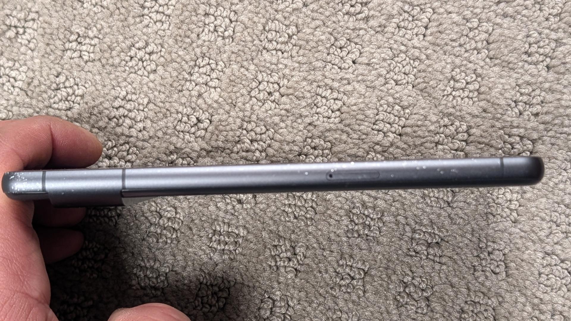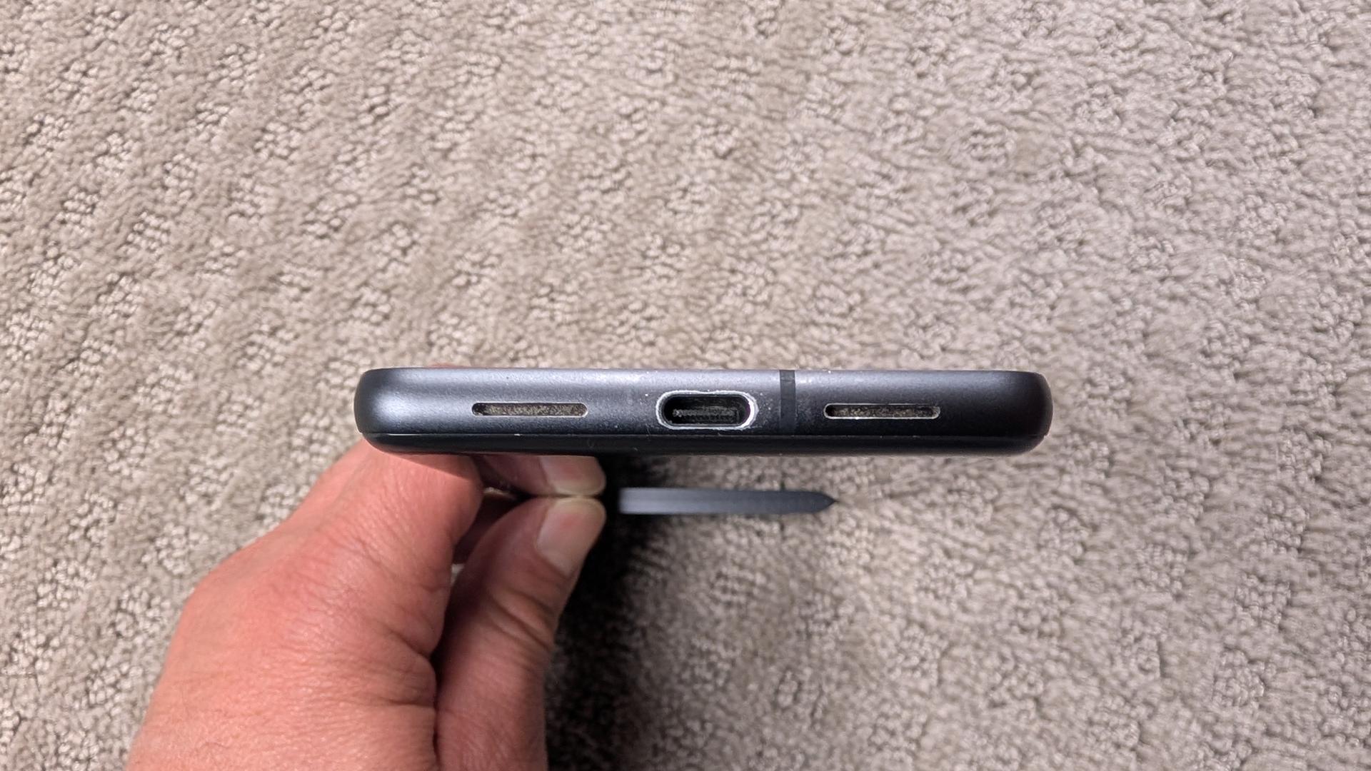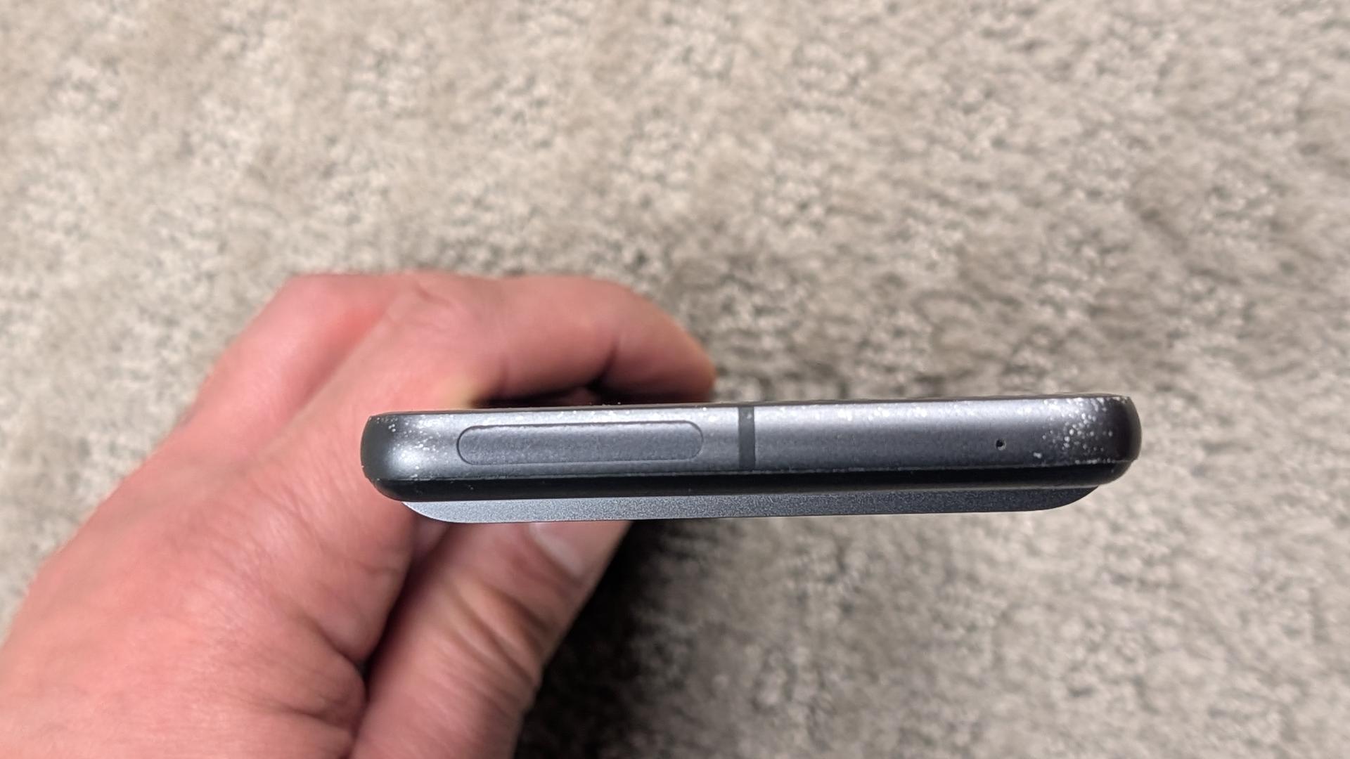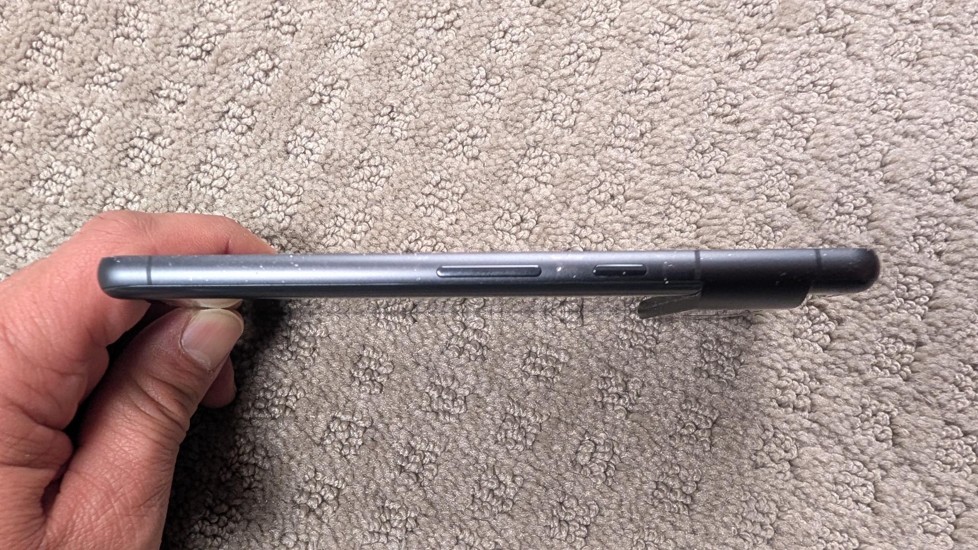 Minor pitting of the aluminum perimeter throughout. Some scratches on the upper portion of the phone (above the lens ridge) from the original protective case.