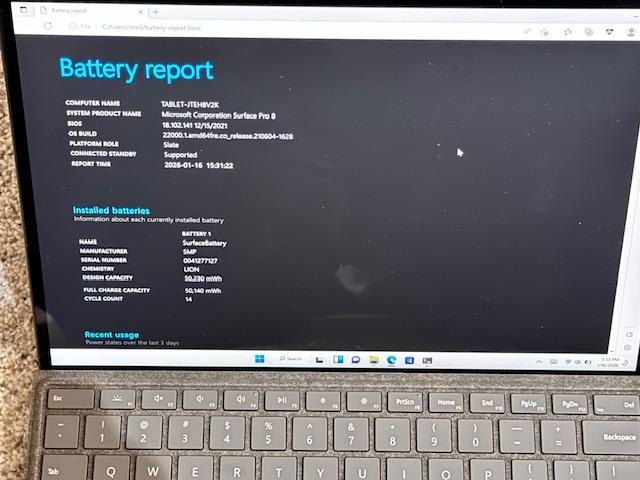 This Surface Pro 8 was very lightly used for testing with just 14 cycles on the battery. The Pro 8, keyboard, and Slim Pen 2 are all in excellent condition, but there is a single small scratch on the back of the tablet that you can see in the close-up photo, otherwise everything is in like new condition.