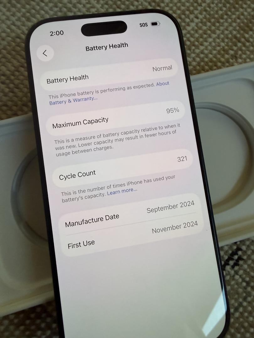 🔋 Battery & Internals: Unlike many used phones with degraded batteries, this unit is in excellent internal health with a maximum capacity of 95% and a cycle count of only 321 cycles. See photos for more.