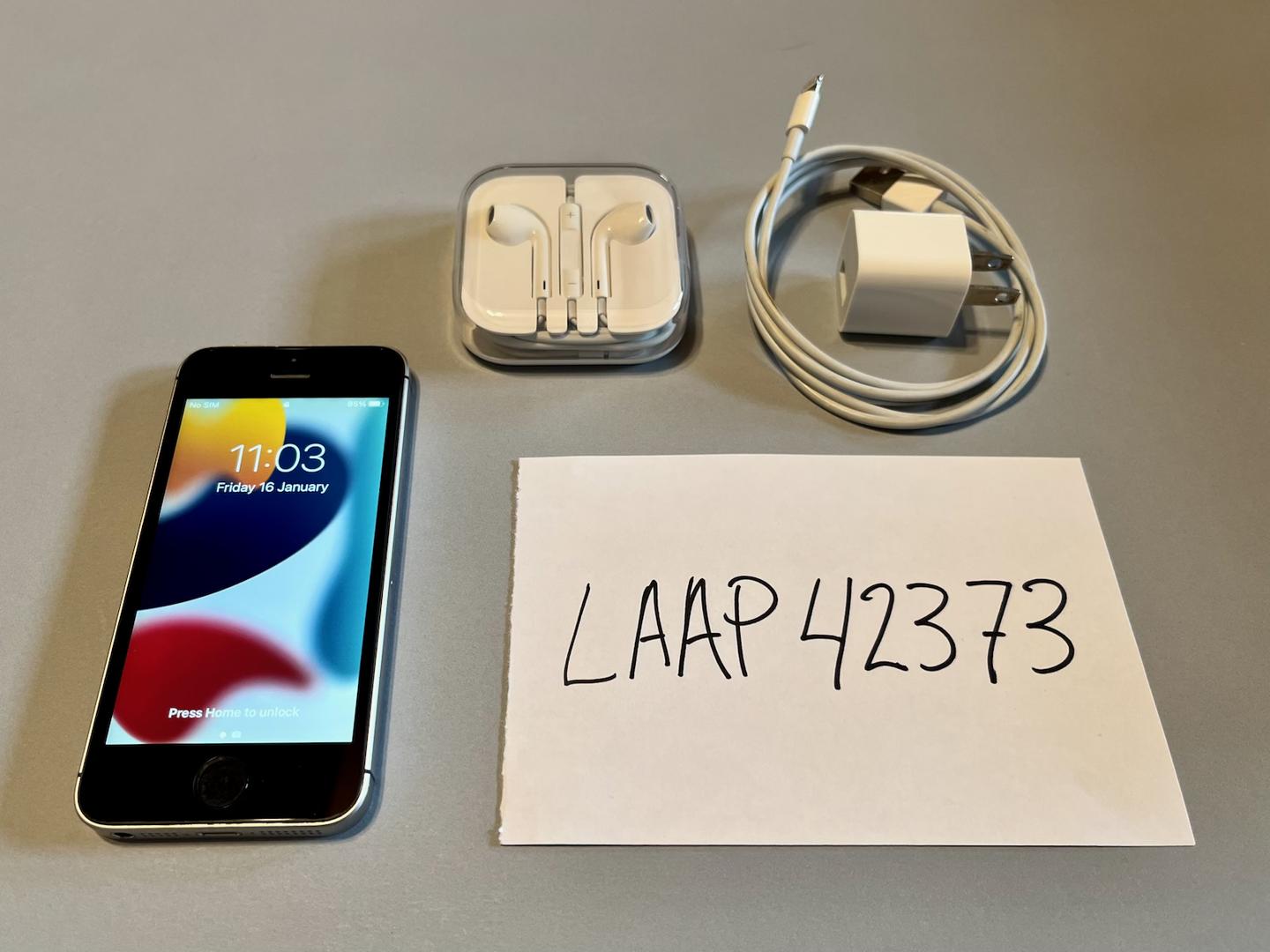 Great looking Space Grey iPhone SE with the largest storage capacity of this model. Lightly used, with just minor scuffs on the back, and a pristine screen face. Comes with a glass screen protector in place which is free of any damage, and no blemishes underneath.