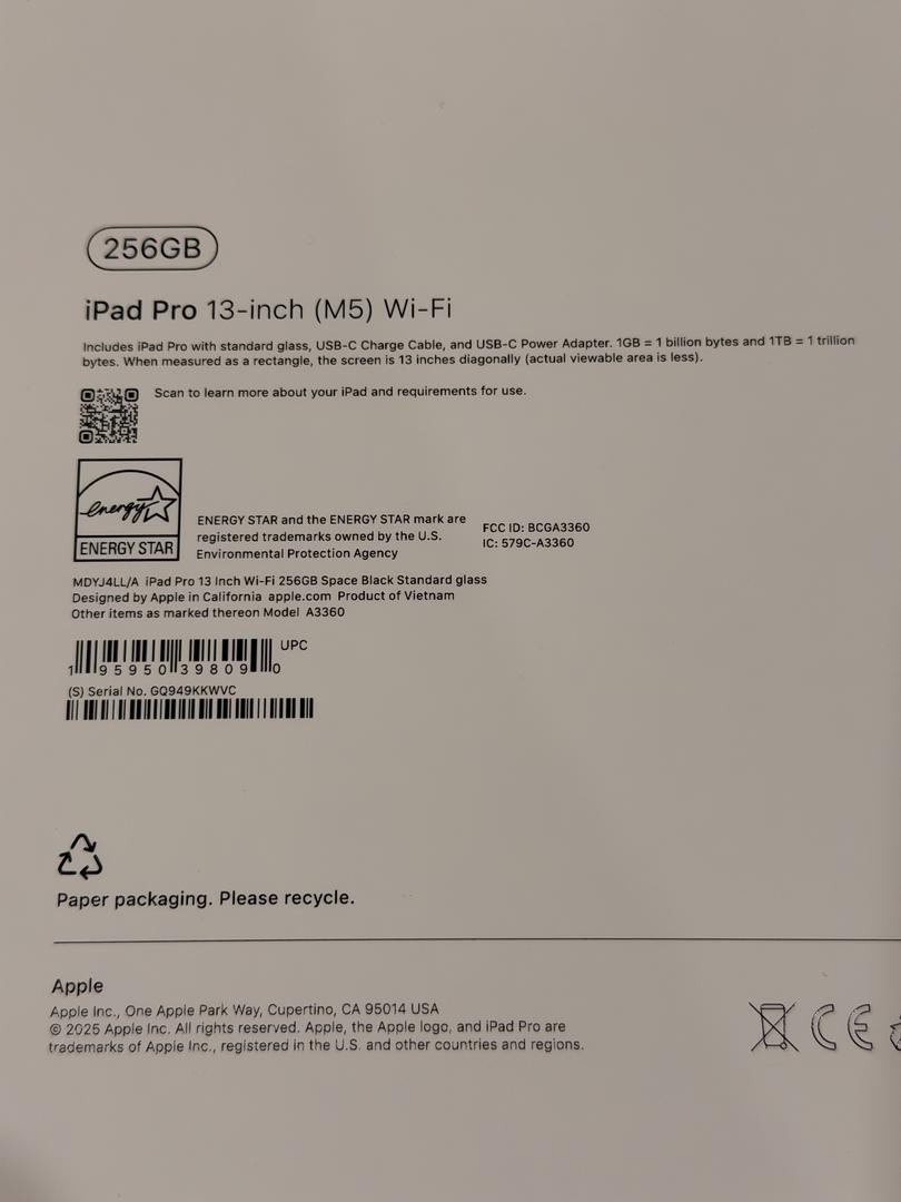 Apple iPad Pro 13 in M5 256GB Factory Sealed