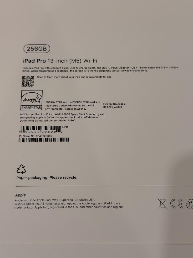 Apple iPad Pro 13 in M5 256GB Factory Sealed