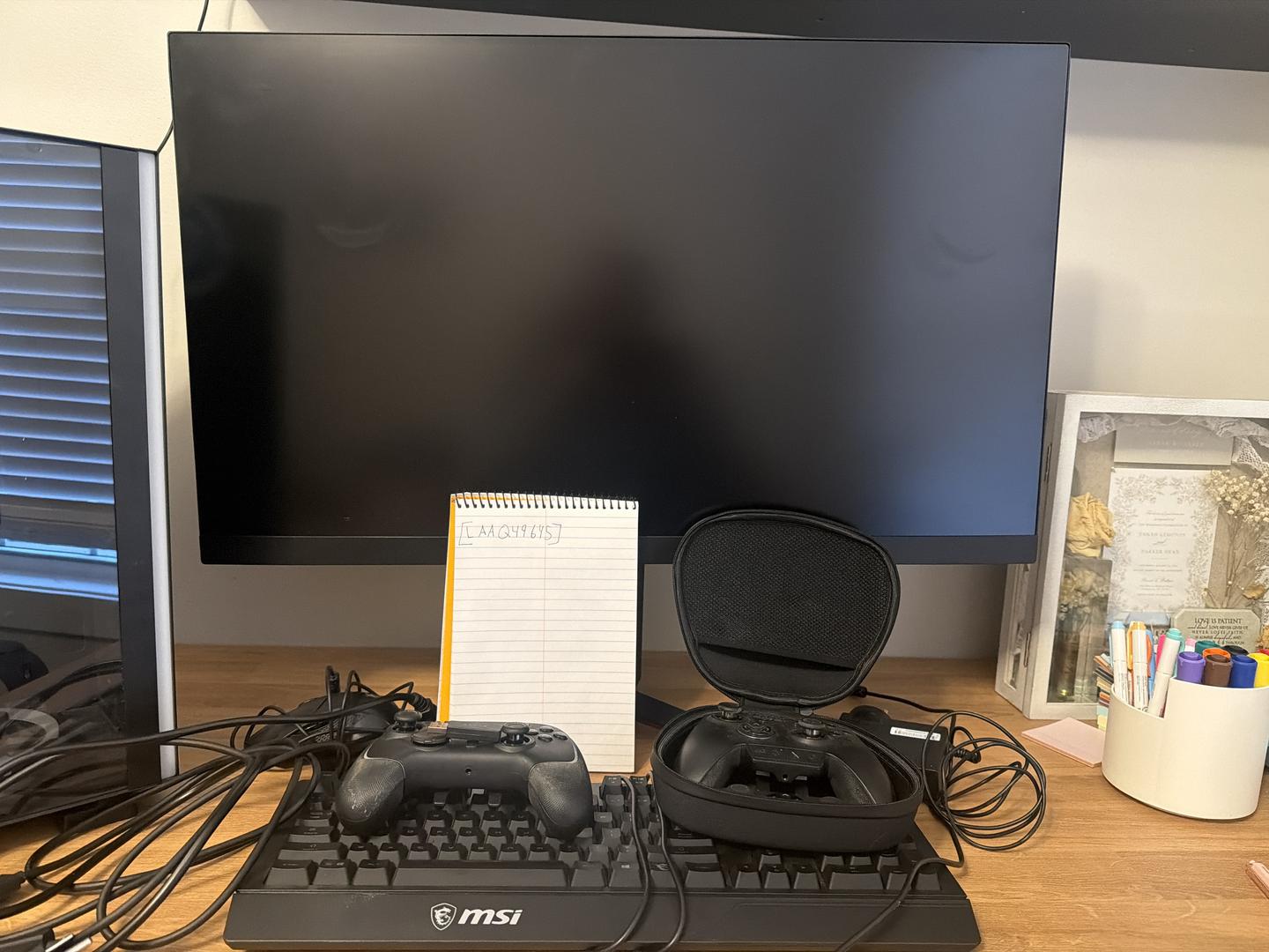 LG gaming monitor MSI wired mouse and key along with 2 gaming controllers. Razer Wolverine v2 pro and razor Wolverine ultimate