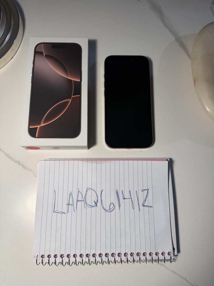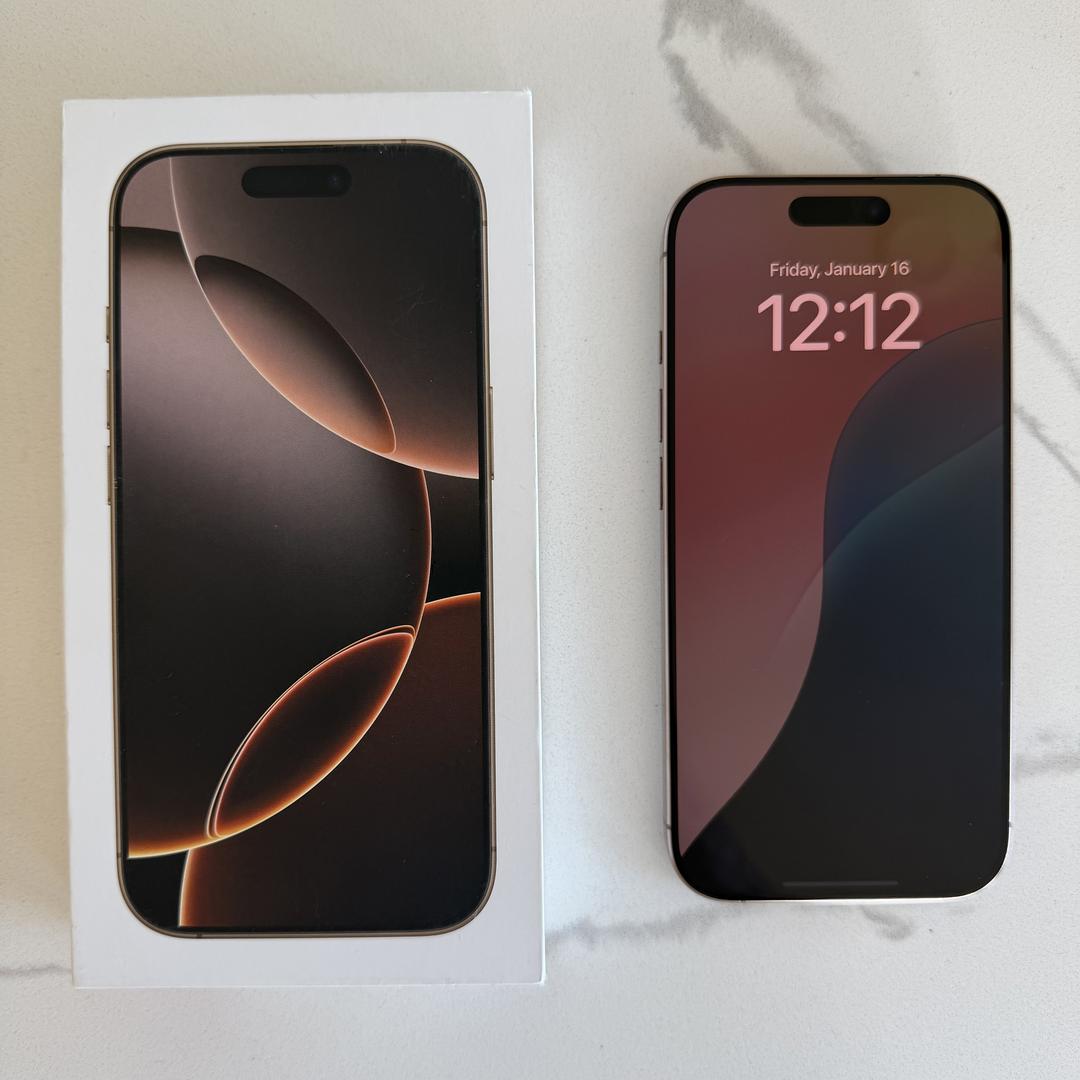 Pretty much brand new, open box with original accessories still in packaging, iPhone 16 Pro in Desert Titanium with 128 GB of storage. It is unlocked and can be used with essentially any carrier. The battery is still at 100% battery life, and the photo shows it was first activated in September 2025 but was essentially just opened and set up as I got the 17 pro shortly after. I tried to get photos of the front and back at angles to show that it has zero scratches or marks. So, the phone truly is like a brand new iPhone, just that the box has been opened. Thank you for reading, and let me know if you have any questions!