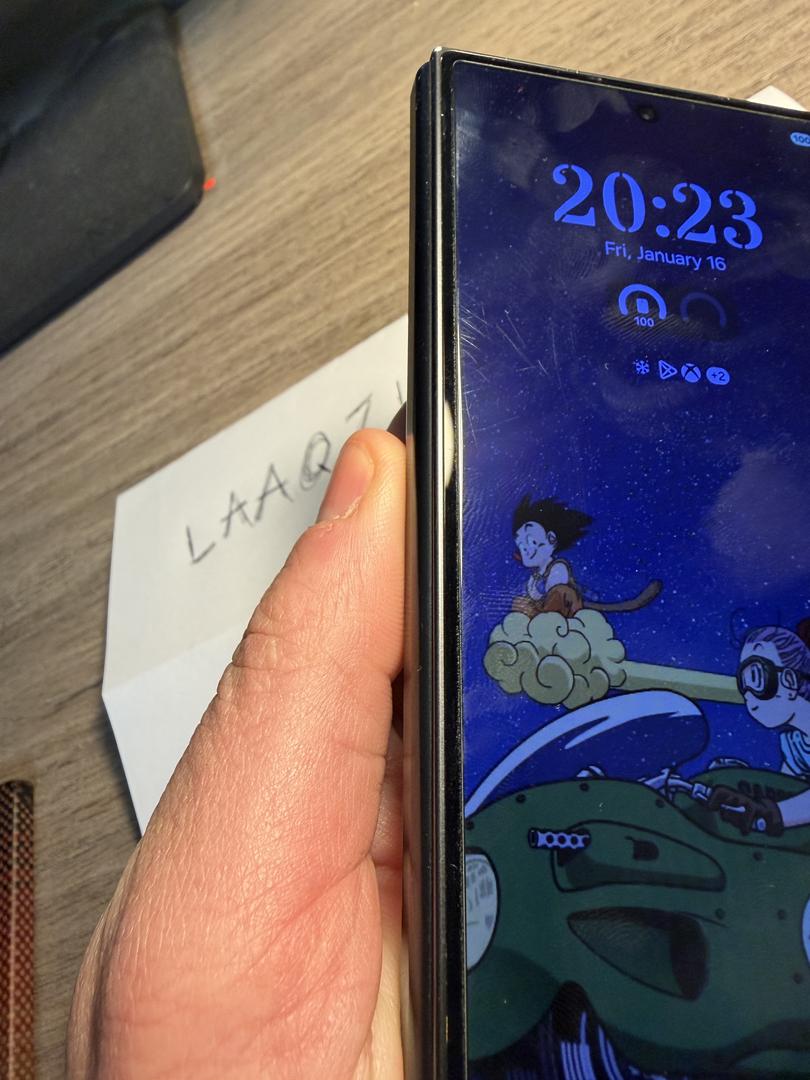 Slight scuffs on front screen left side (covered with screen protector which looks a lot worse than the screen does) from a front case. Small scratch on hinge from the same case which is why I switched to a pitaka.
