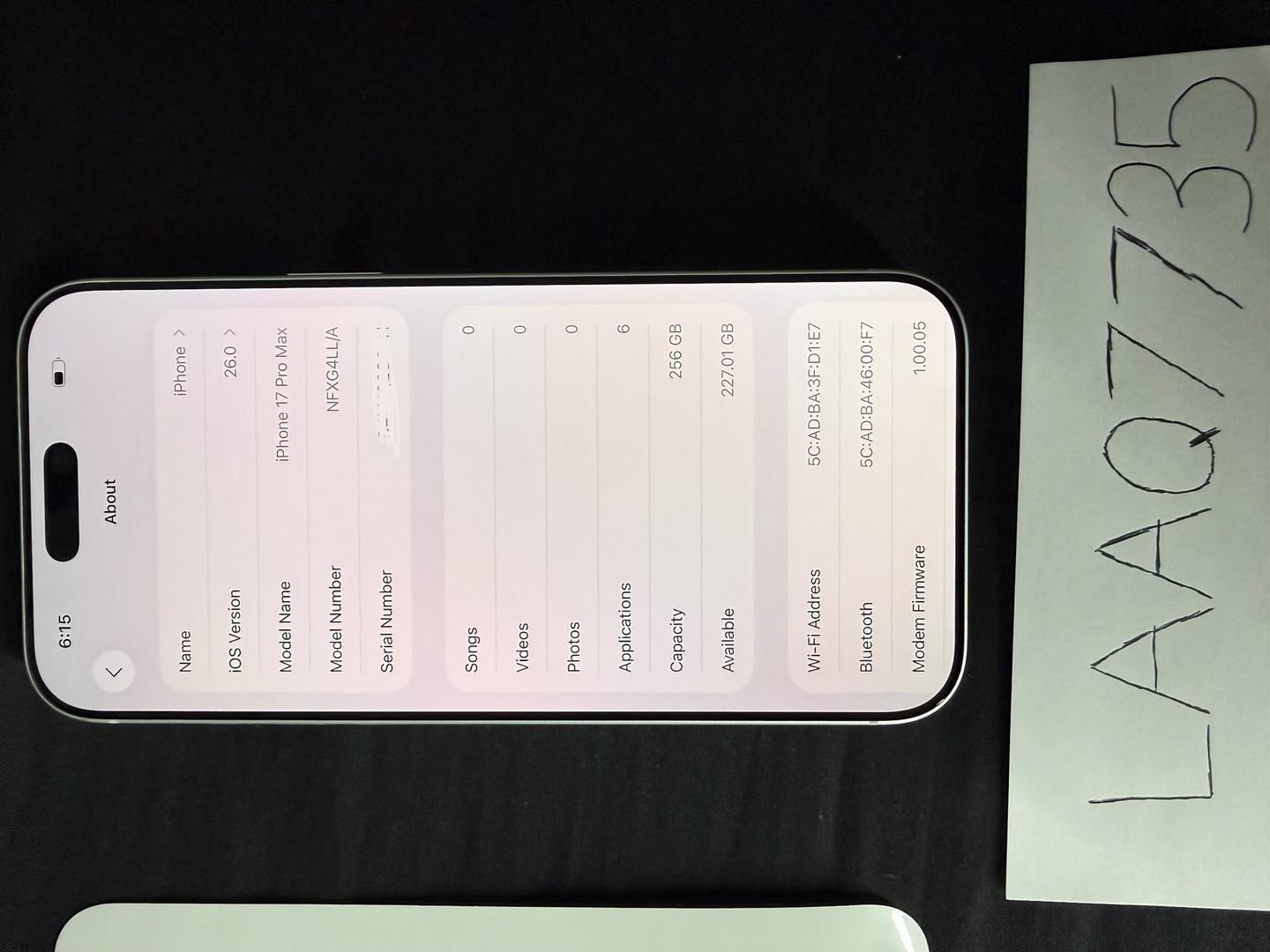 Battery Health: New, 0 cycle count.