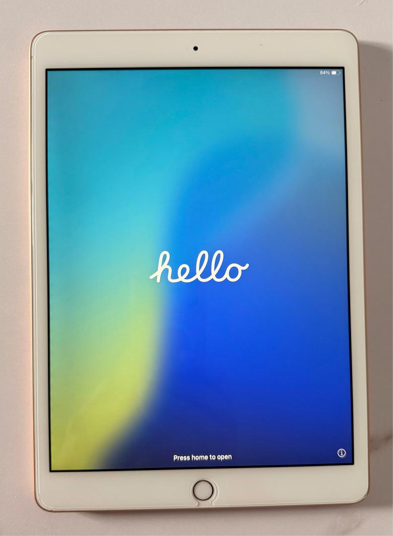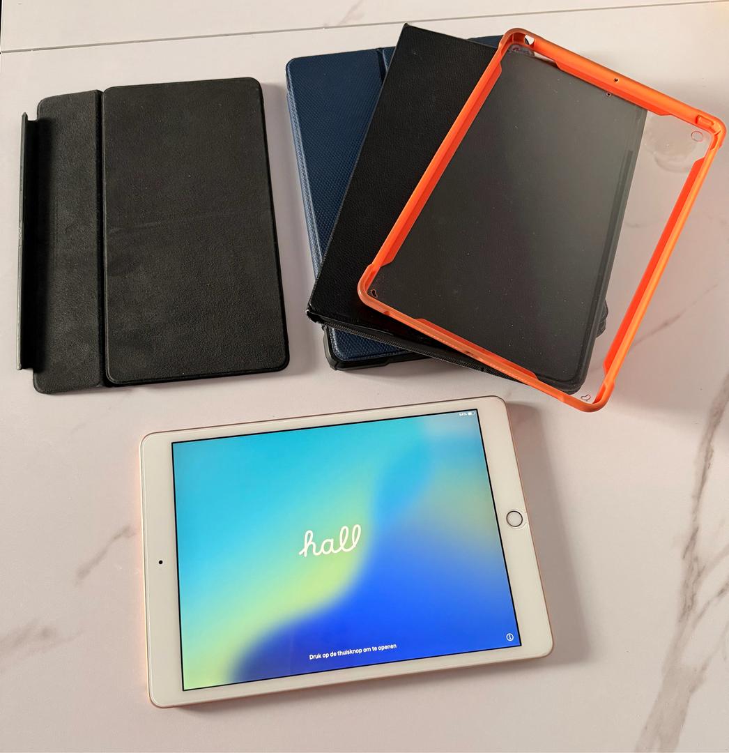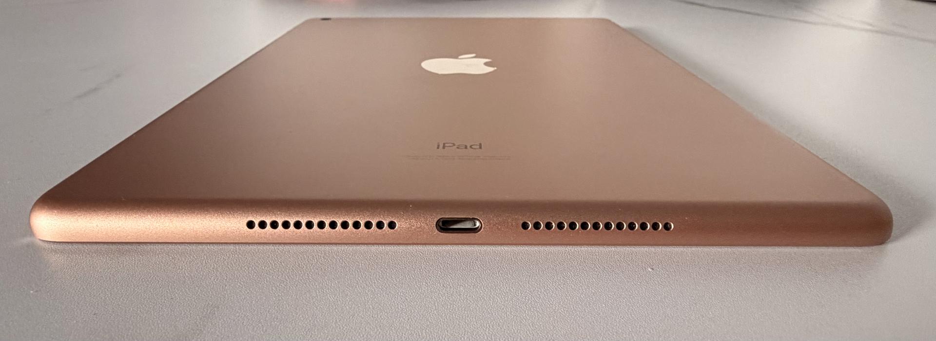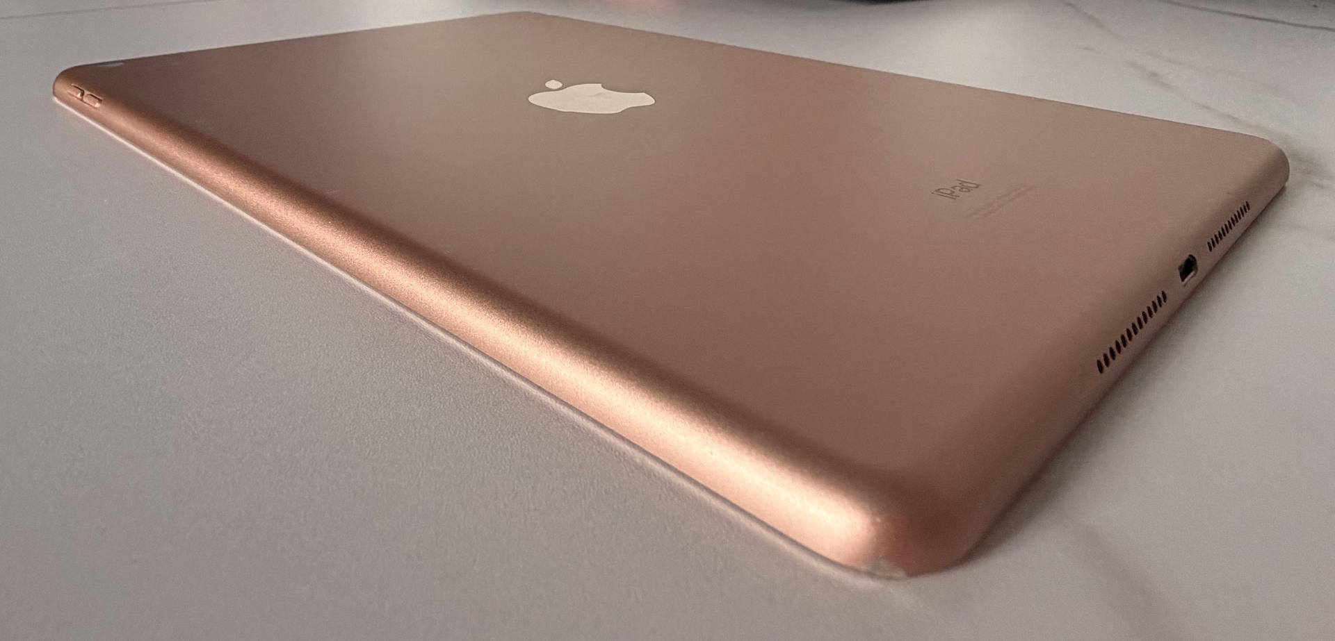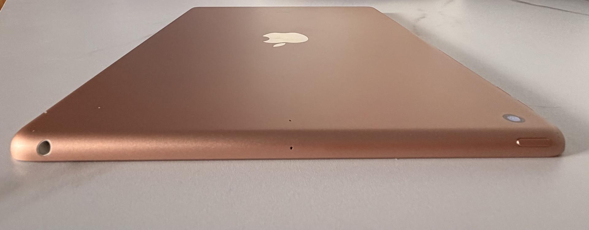 Apple iPad 7th Gen 32GB 10.2” Gold Wi-fi in Good condition (see photos) including Apple keyboard case and 3 additional cases. Still has screen protector on.